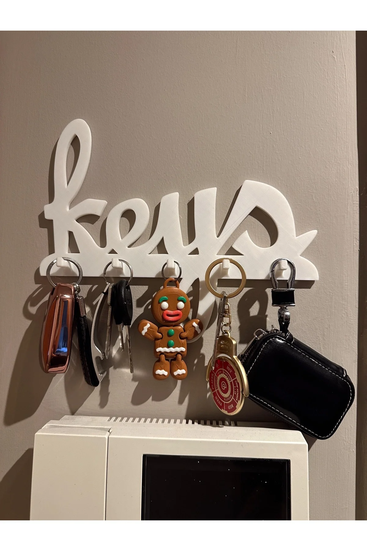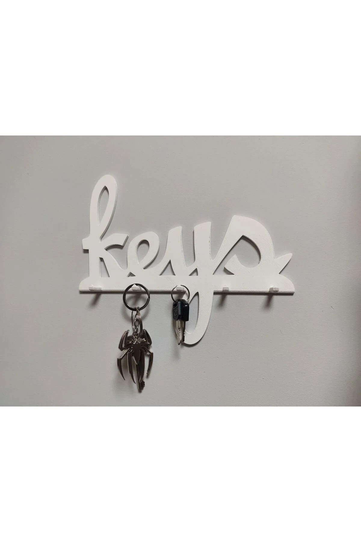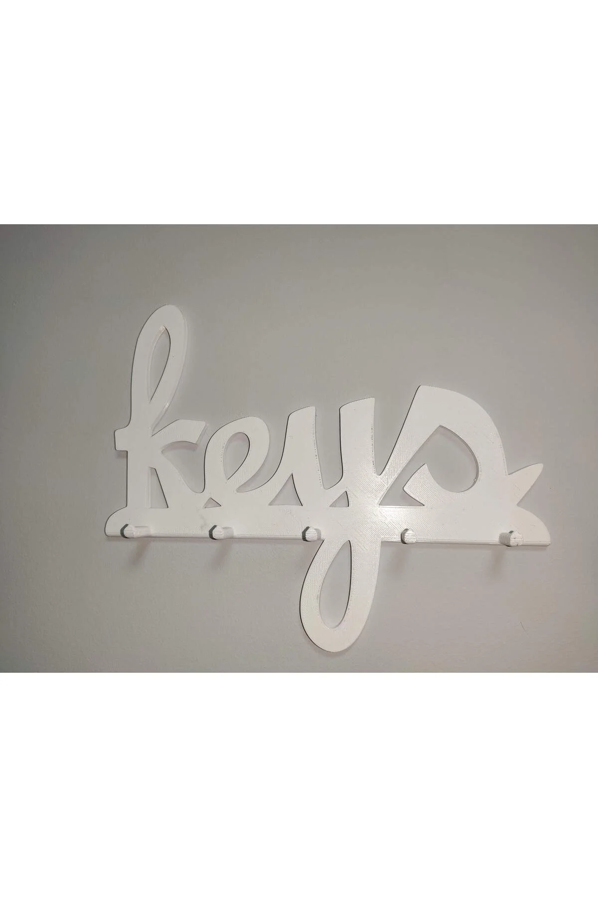 Evlerinizi şık ve düzenli hale getirecek pratik bir çözüm! "Keys" yazılı dekoratif duvar anahtarlığımız, anahtarlarınızı bir arada tutarken aynı zamanda giriş holünüze modern bir dokunuş katıyor.; * Şık ve Modern Tasarım: Özel tasarımıyla her türlü dekorasyona uyum sağlar.; * Dayanıklı Malzeme: Uzun ömürlü kullanım için kaliteli malzemeden üretilmiştir.; * Çoklu Kanca: Birden fazla anahtarı kolayca asmanıza olanak tanır.; * Kolay Montaj: Duvara kolayca monte edilir.; * Pratik Kullanım: Anahtarlarınızı tek bir yerde toplayarak kaybetme riskini azaltır.; Ek Özellikler: * Malzeme: Organik PLA * Boyutlar: * Renk: Beyaz (Farklı renk seçenekleri olabilir) Neden Bu Ürünü Seçmelisiniz? * Evlerinizi daha düzenli hale getirir.; * Anahtarlarınızı kaybetmenizi önler.; * Şık ve modern tasarımıyla dikkat çeker.; * Kolayca monte edilir ve temizlenir.; Kullanım Alanları: * Giriş holü * Mutfak * Ofis * Çocuk odası Ürünümüzü tercih ettiğiniz için teşekkür ederiz!