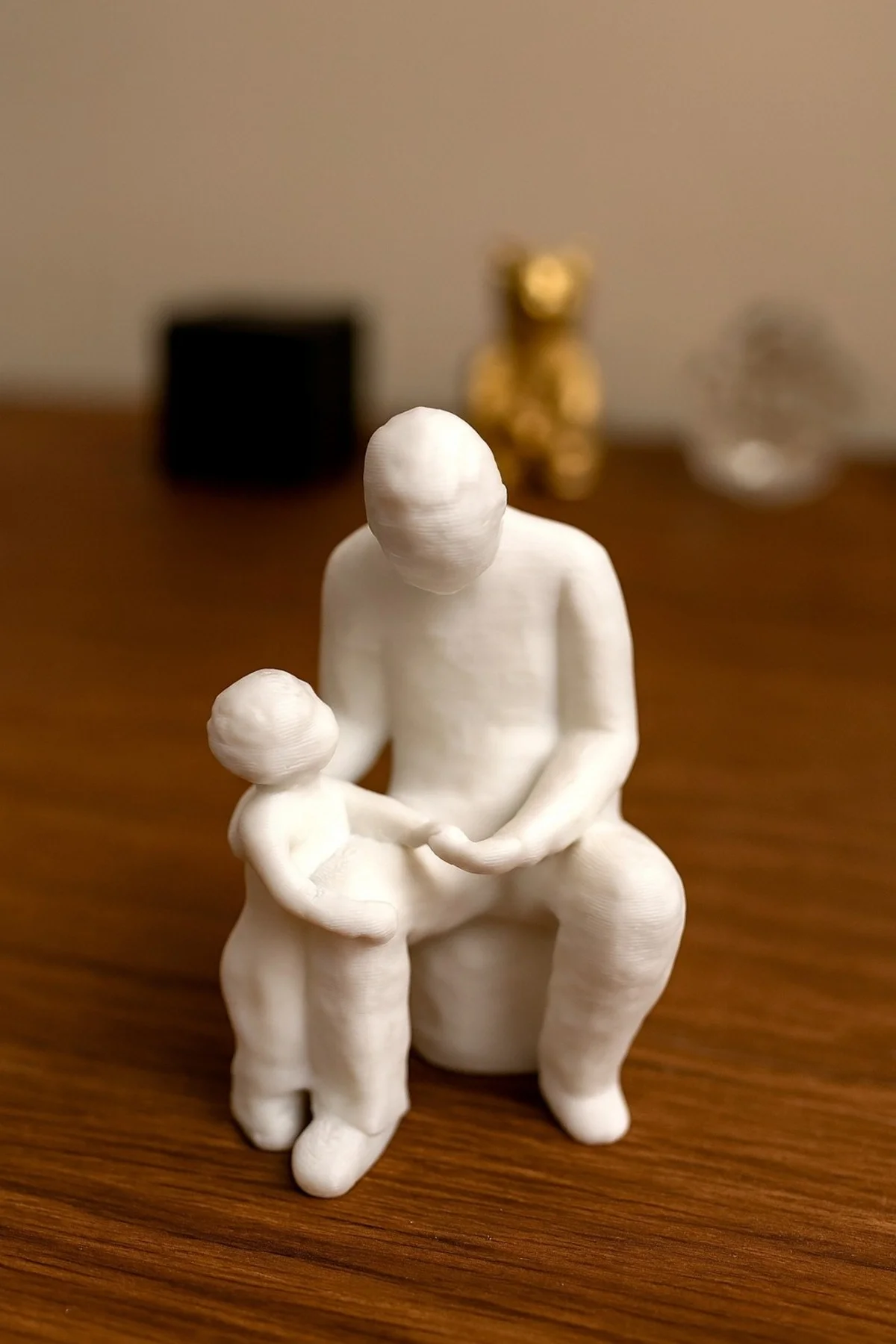 Babalar Günü için duygu dolu bir hediye seçeneği olan bu biblo, sadece dekoratif bir obje değil, aynı zamanda değerli anıları ve aile bağlarını hatırlatacak özel bir anlam taşır. Modern ve minimal çizgileriyle her yaşam alanına uyum sağlayacak şık bir aksesuar olarak da öne çıkar.