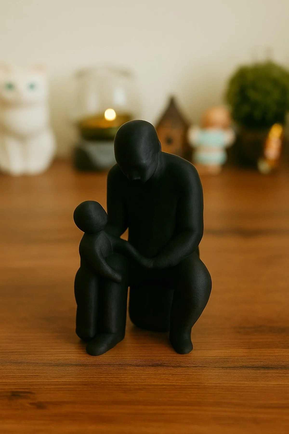 Babalar Günü için duygu dolu bir hediye seçeneği olan bu biblo, sadece dekoratif bir obje değil, aynı zamanda değerli anıları ve aile bağlarını hatırlatacak özel bir anlam taşır. Modern ve minimal çizgileriyle her yaşam alanına uyum sağlayacak şık bir aksesuar olarak da öne çıkar.