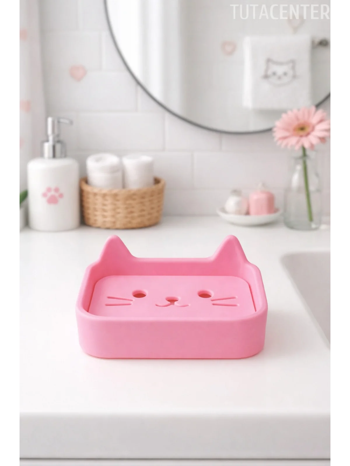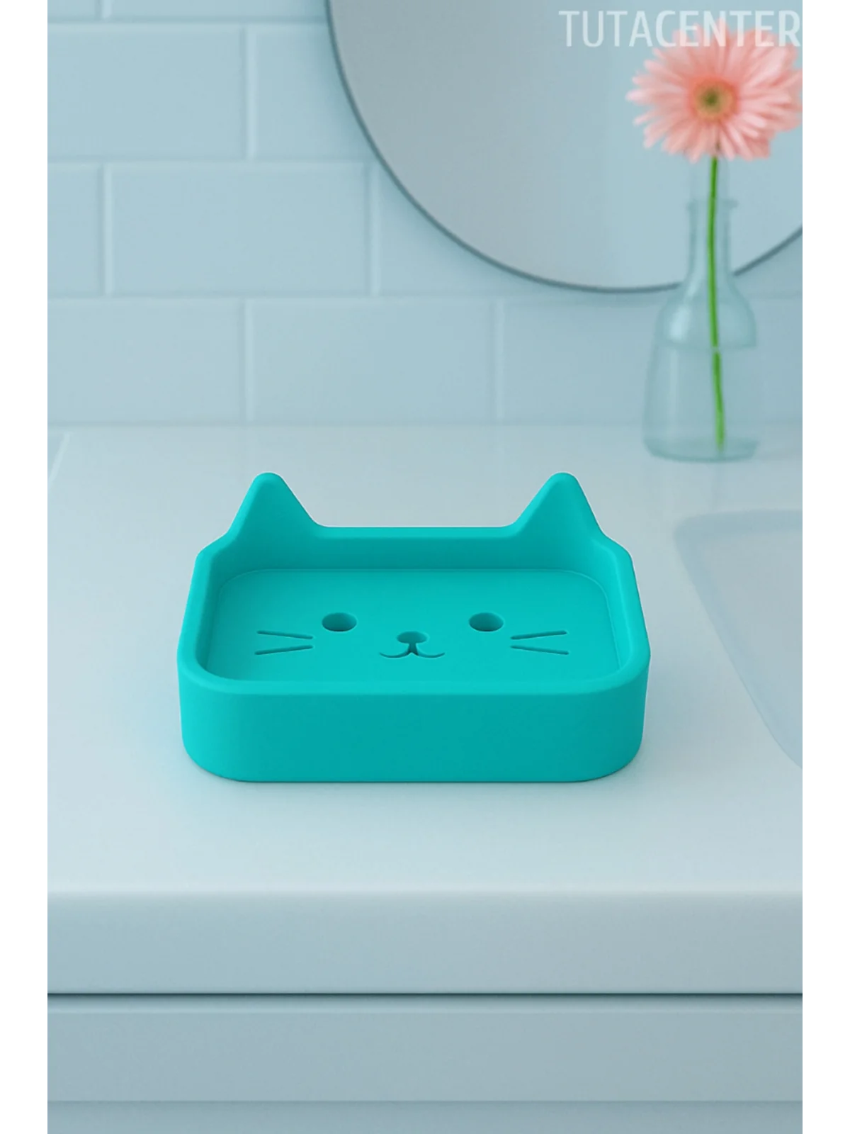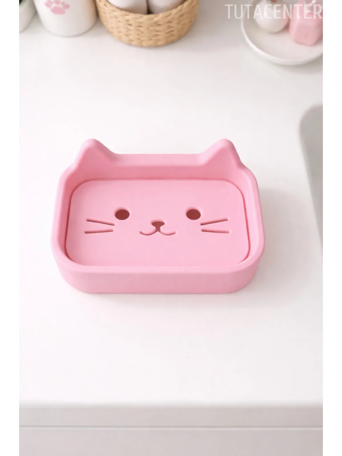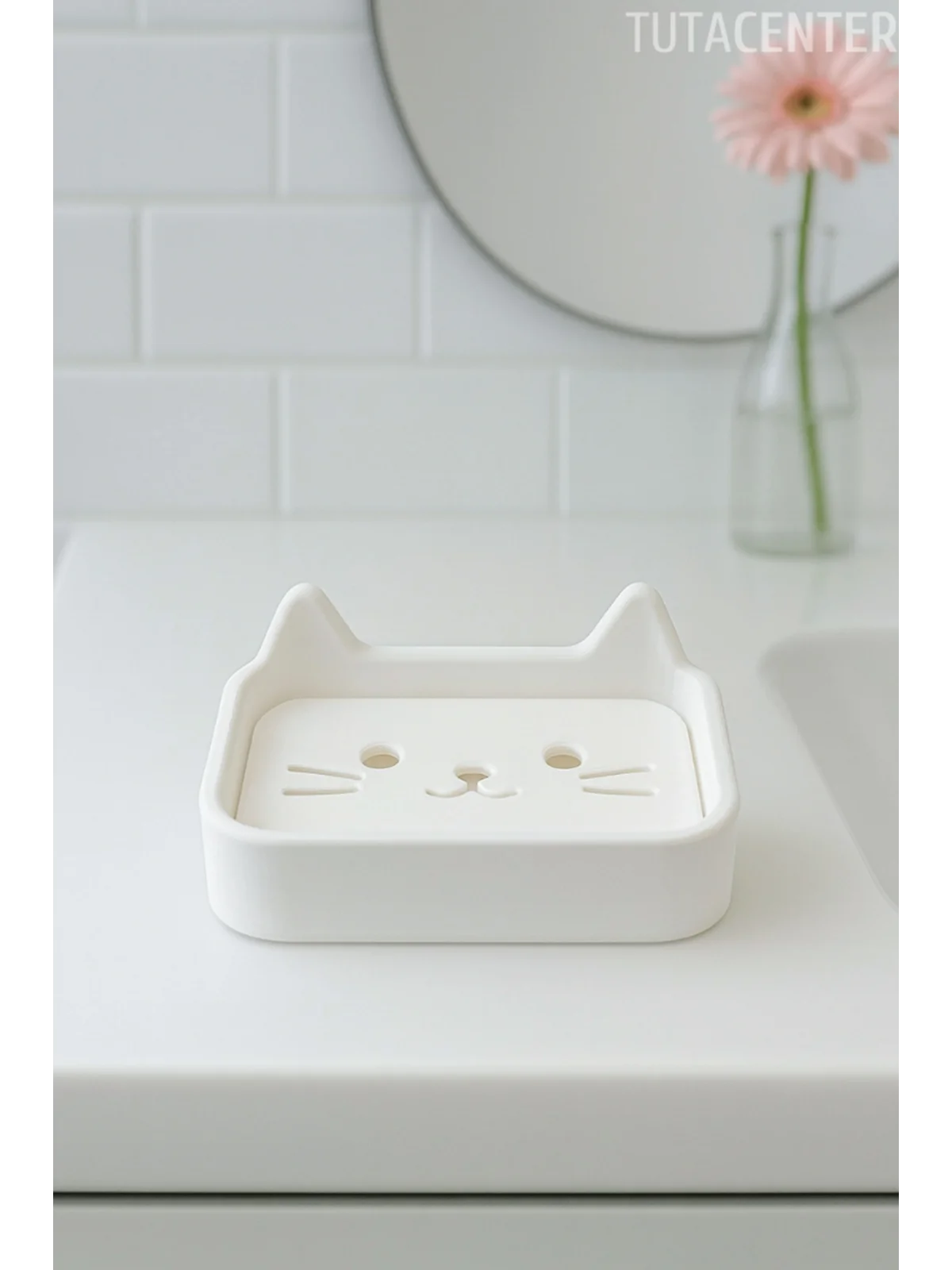 Kedi Sabunluk Standı – Su Tahliyeli, Dayanıklı Plastik Banyo Ürünü