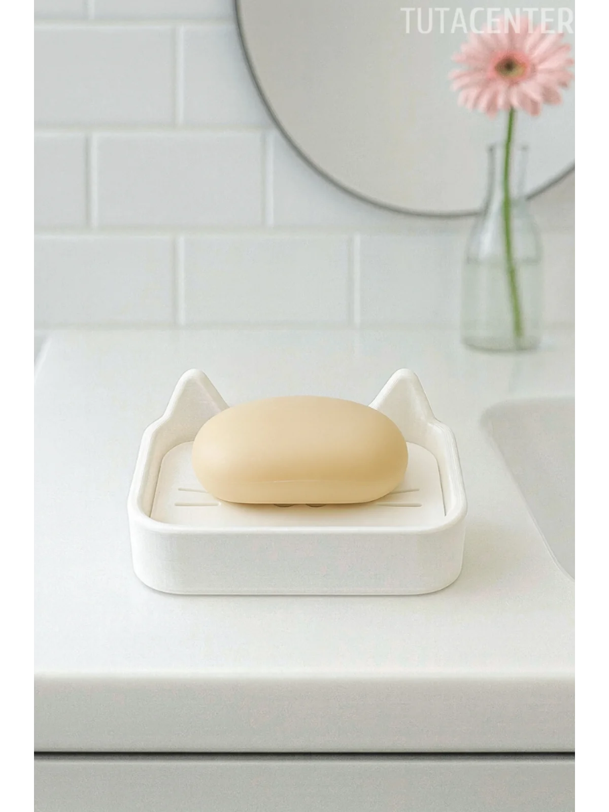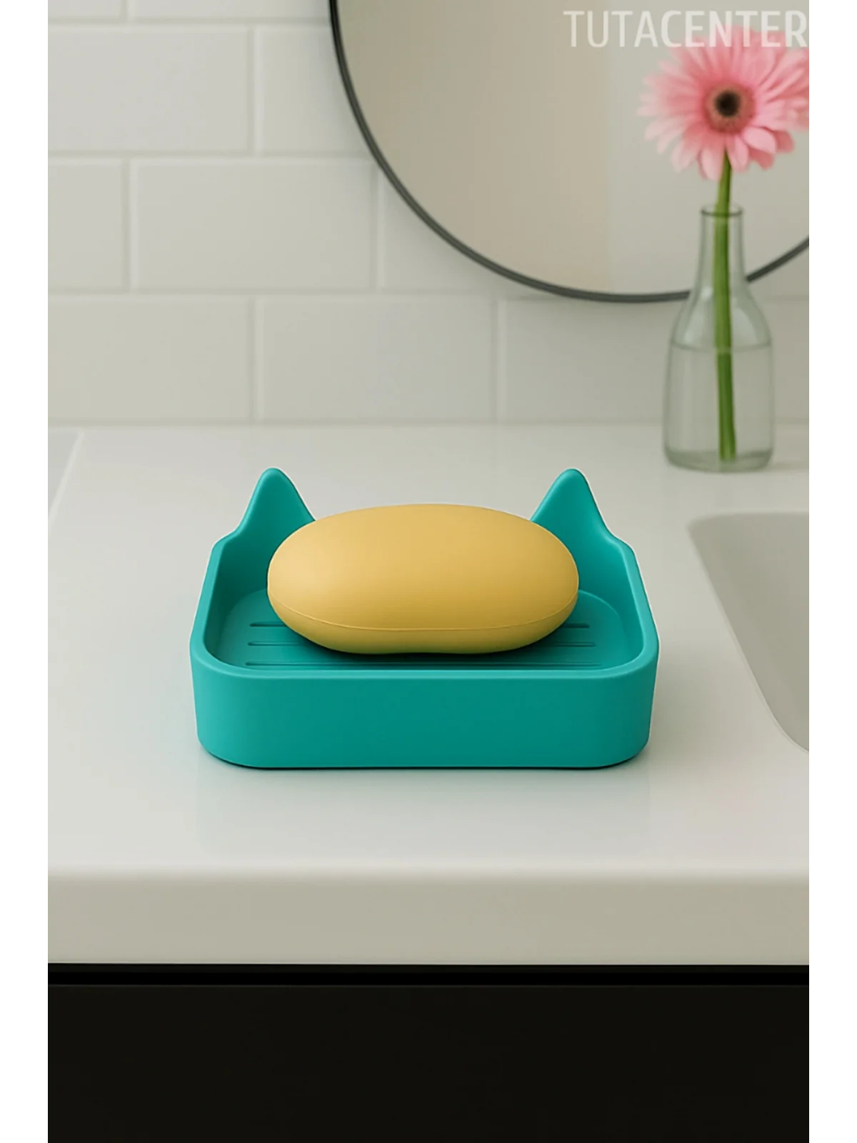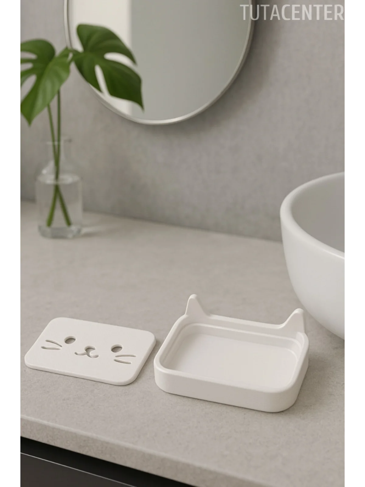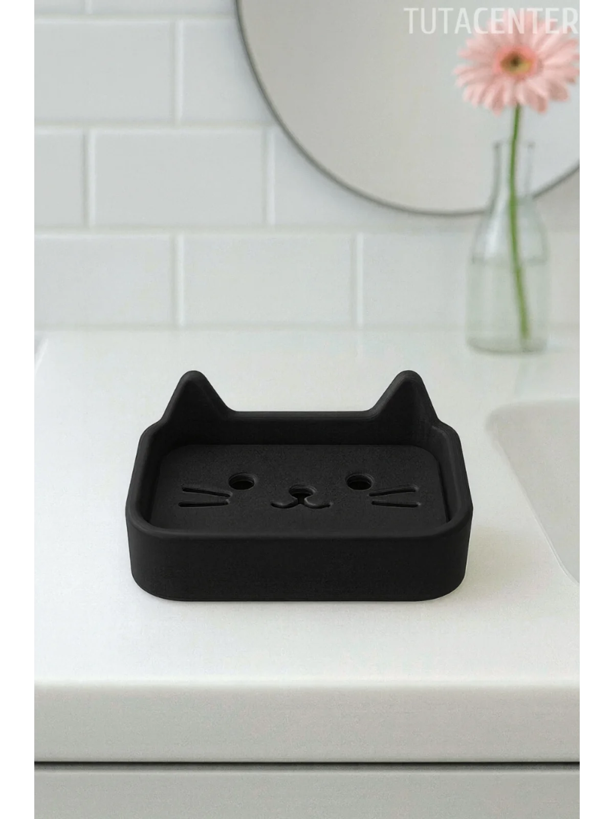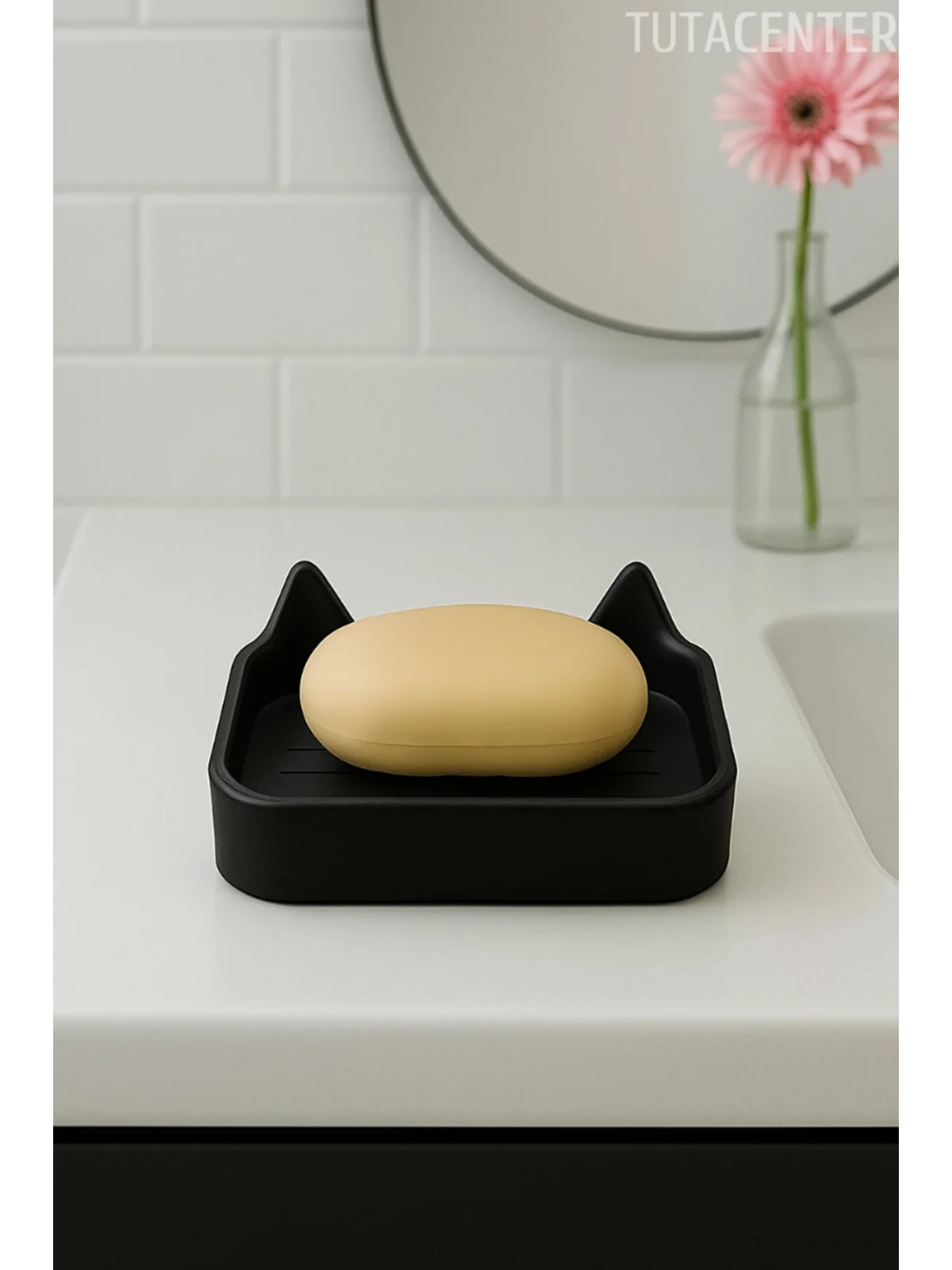 Kedi Sabunluk Standı – Su Tahliyeli, Dayanıklı Plastik Banyo Ürünü