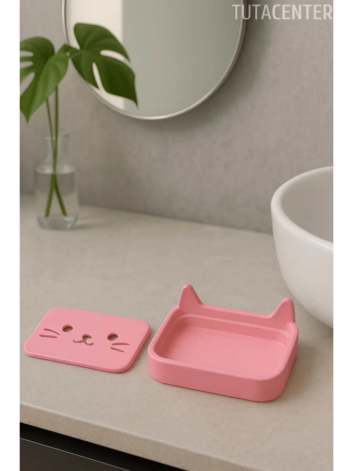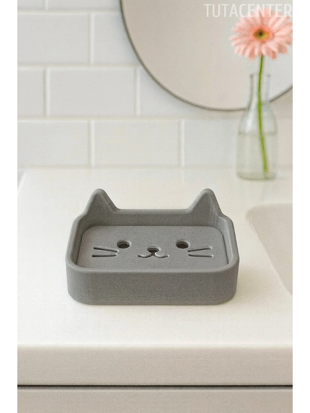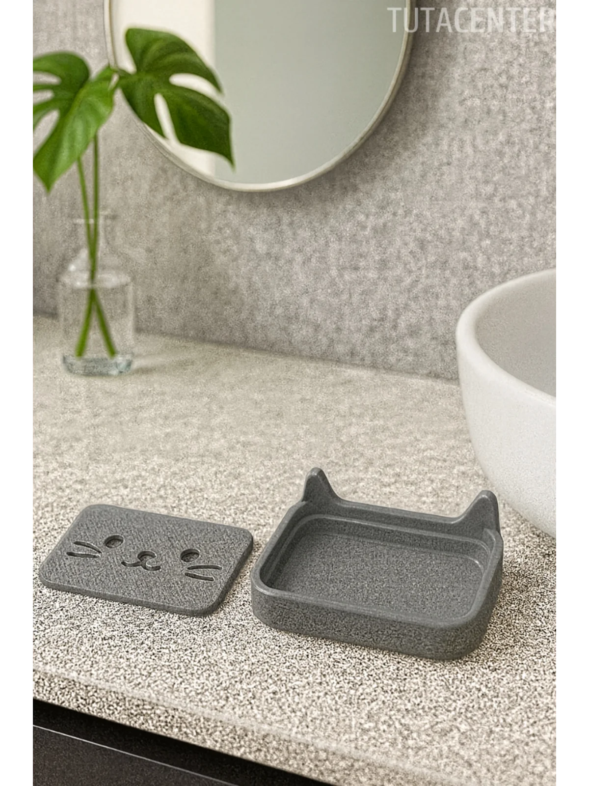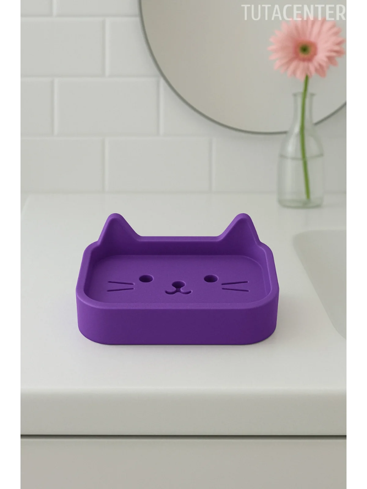 Kedi Sabunluk Standı – Su Tahliyeli, Dayanıklı Plastik Banyo Ürünü