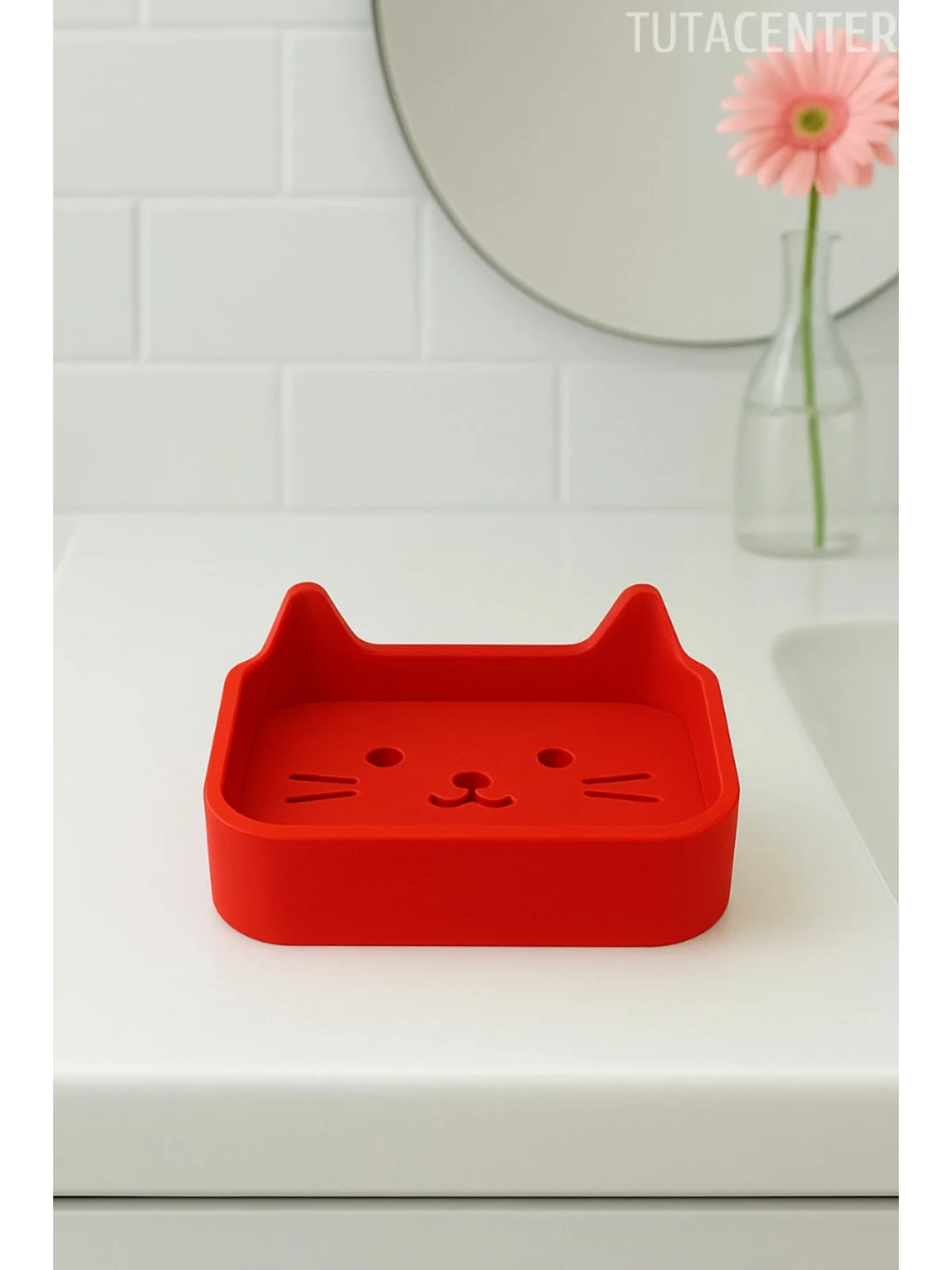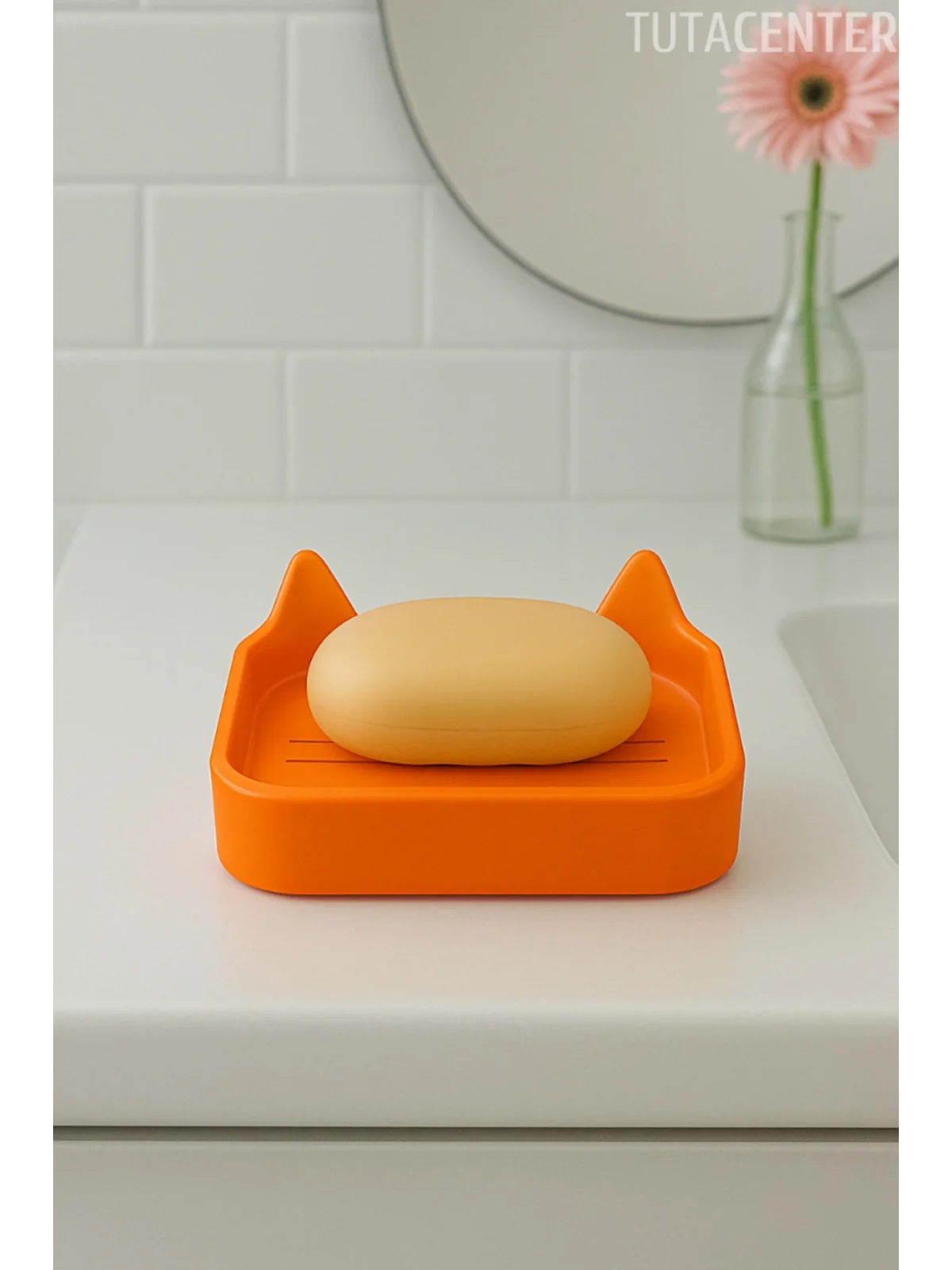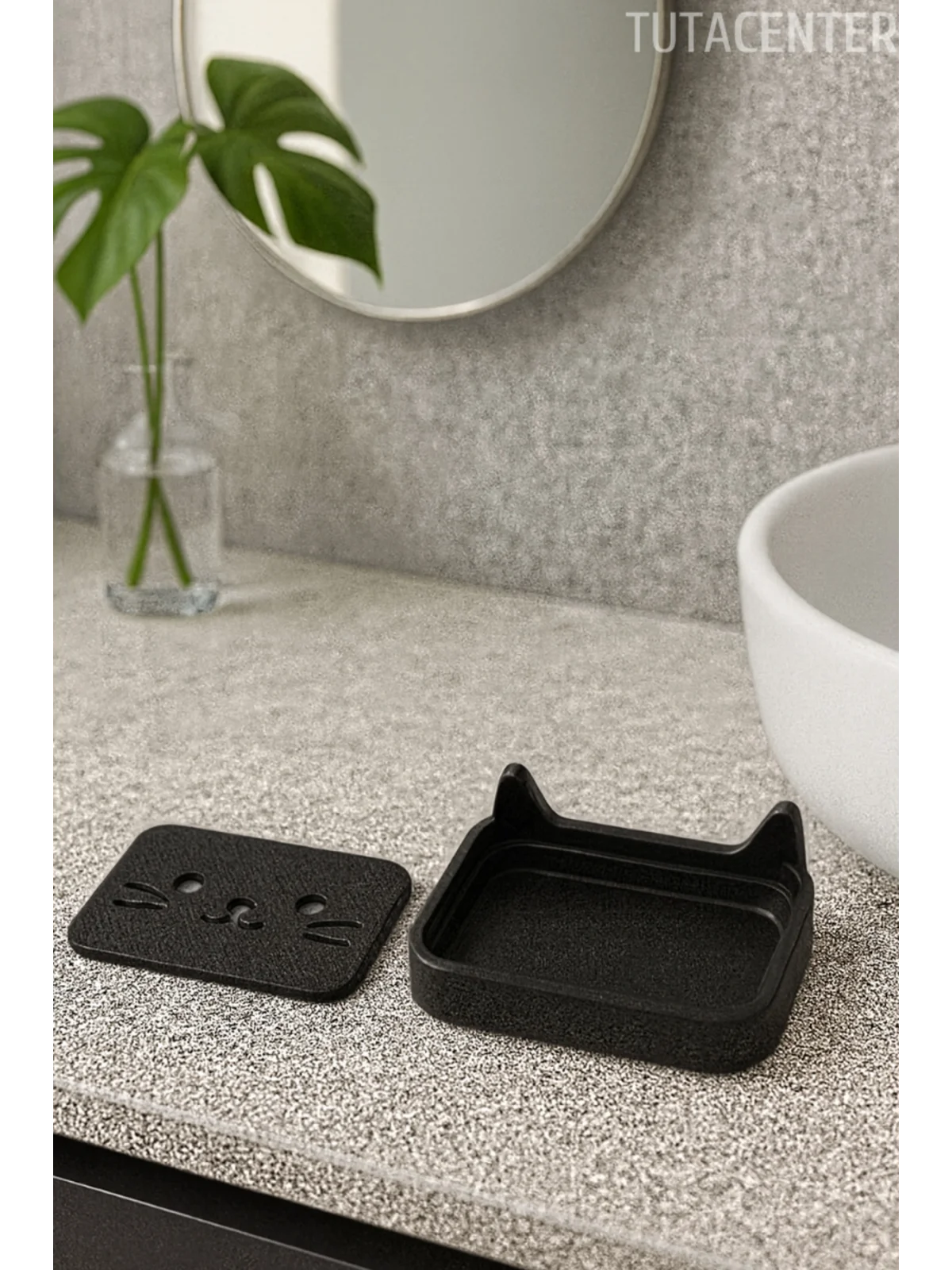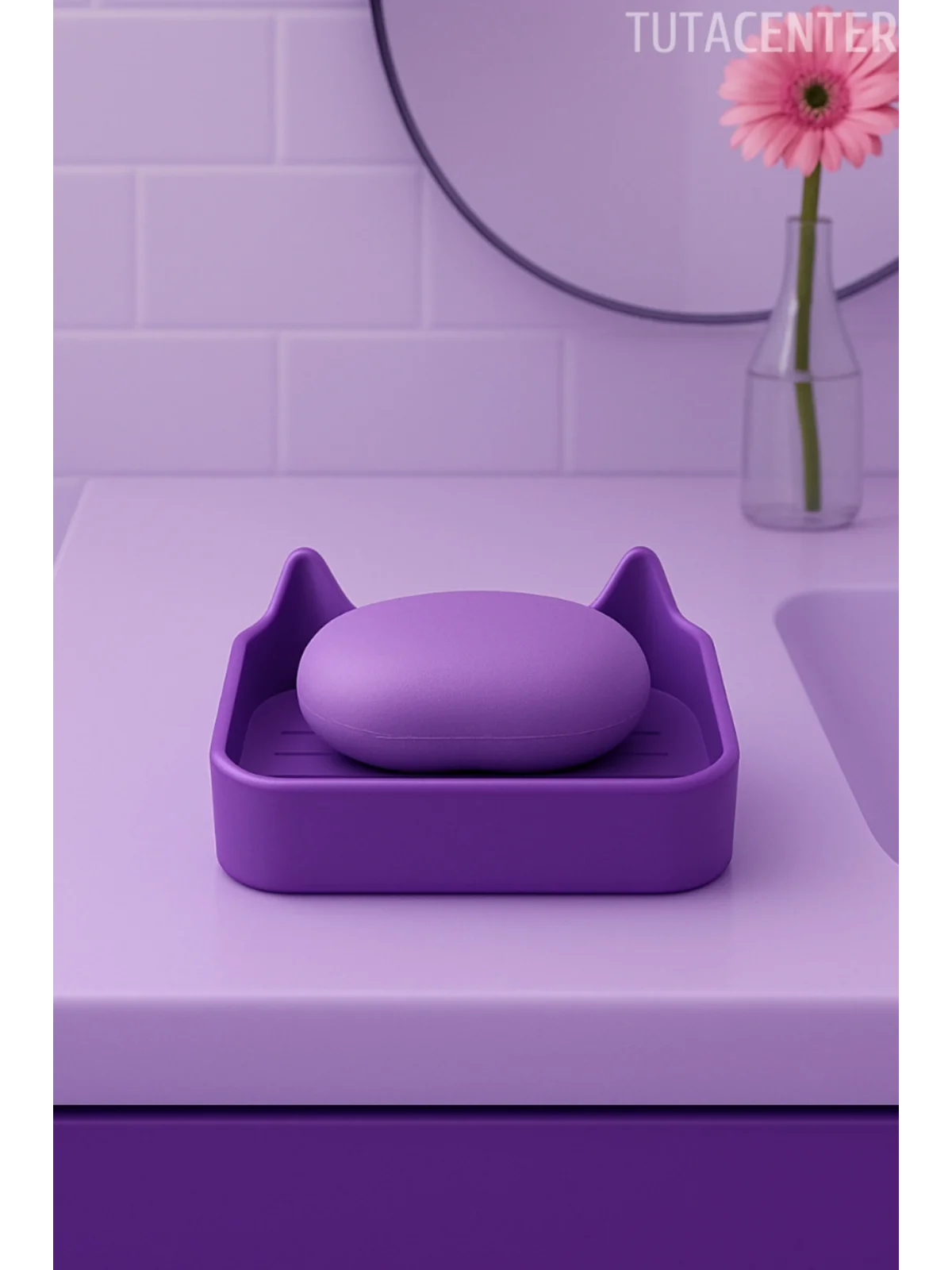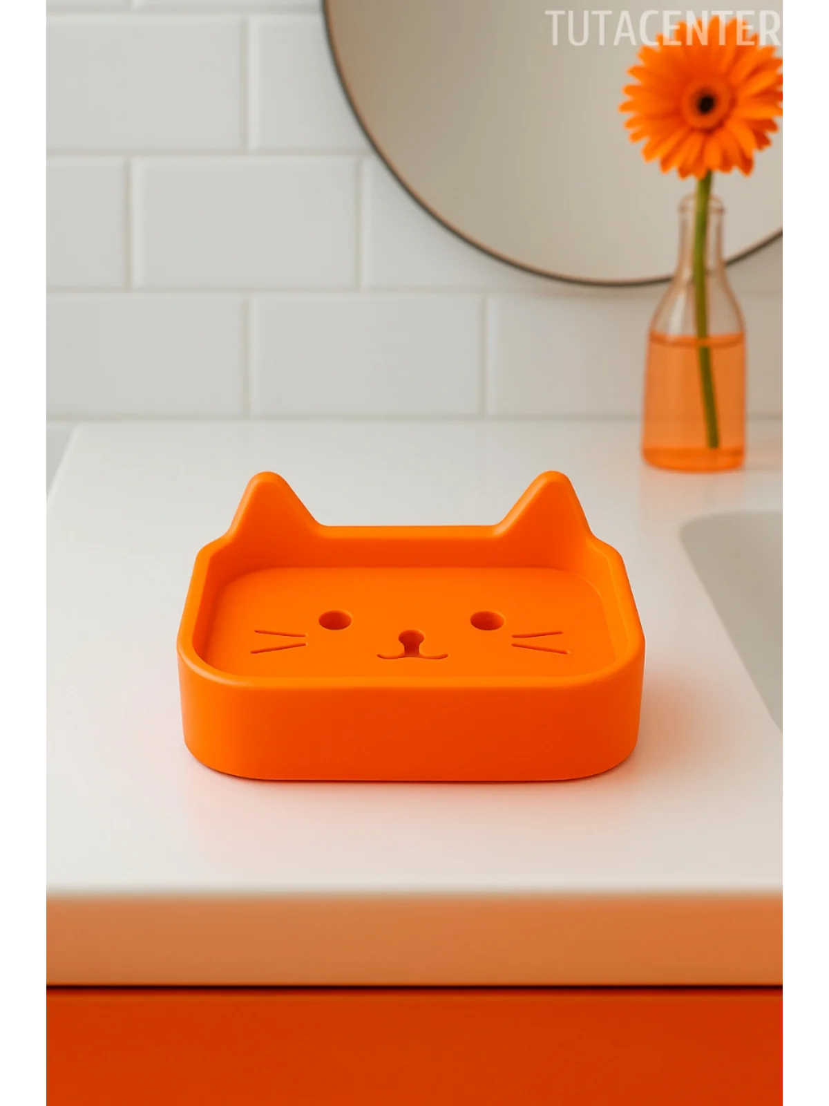 Kedi Sabunluk Standı – Su Tahliyeli, Dayanıklı Plastik Banyo Ürünü