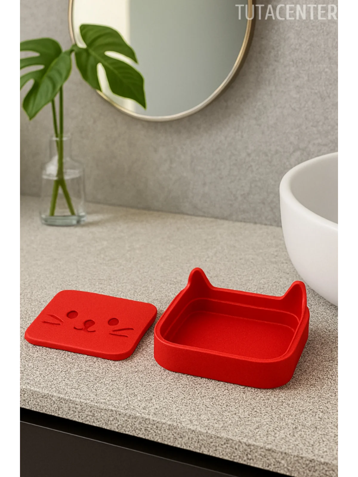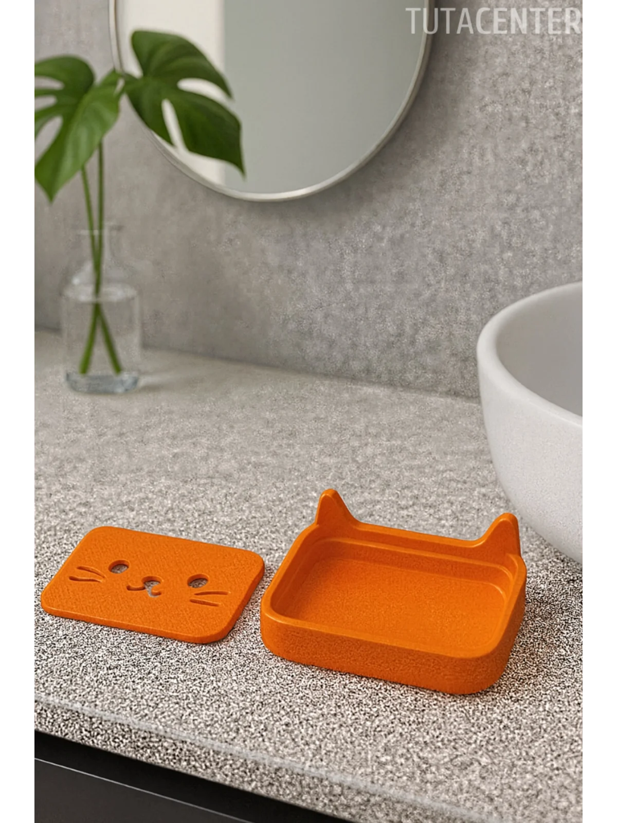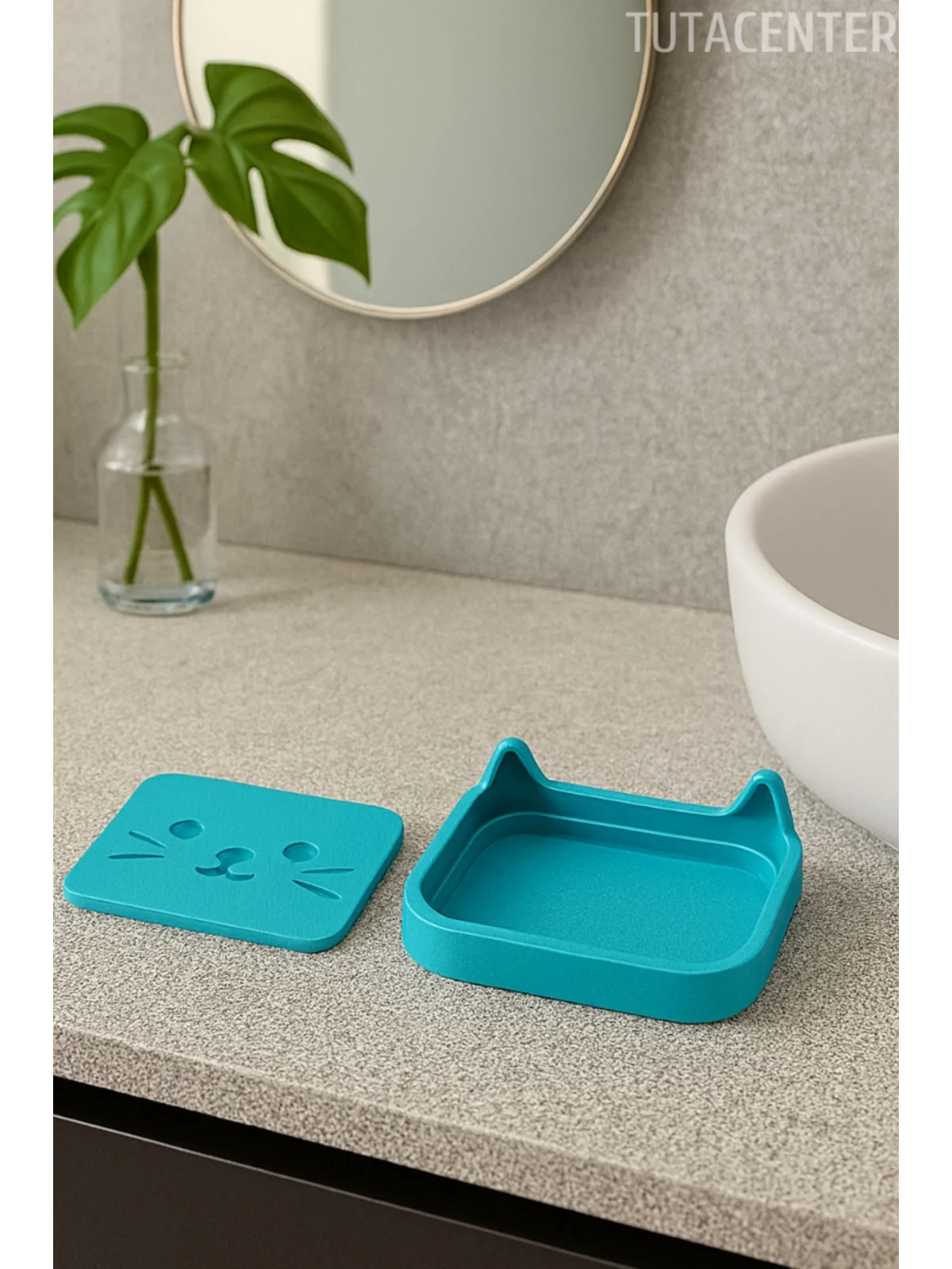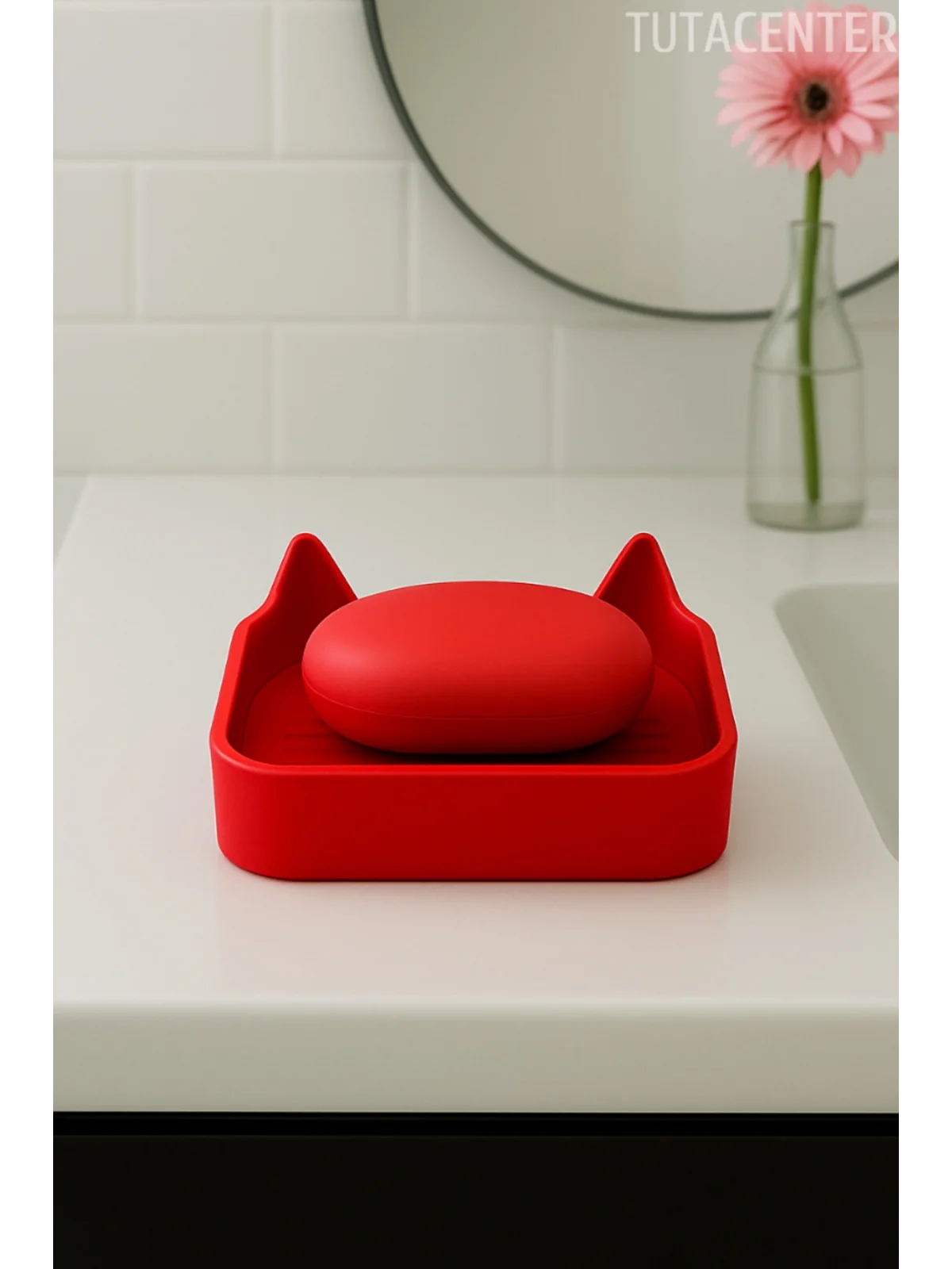 Kedi Sabunluk Standı – Su Tahliyeli, Dayanıklı Plastik Banyo Ürünü