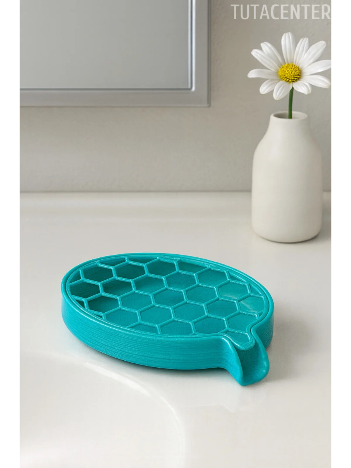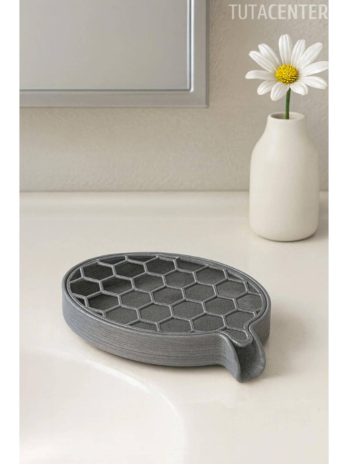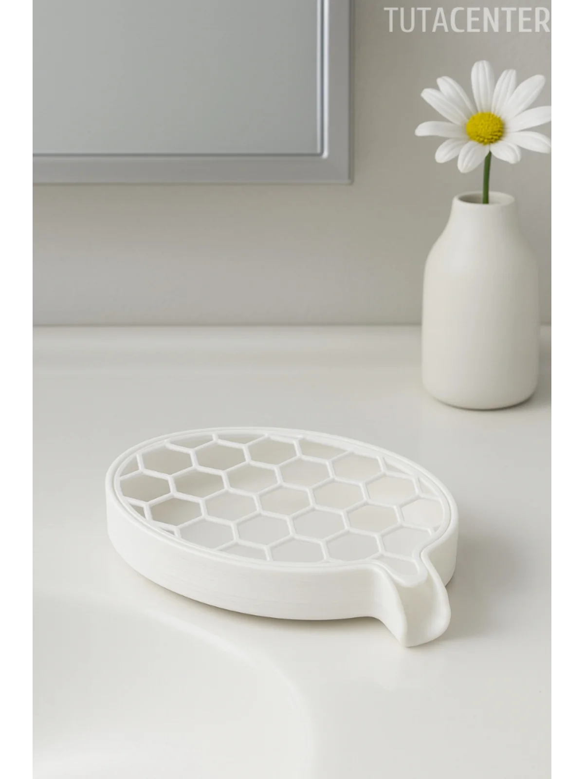 Petek Desenli Su Tahliyeli Sabunluk Standı Modern Banyo Standı