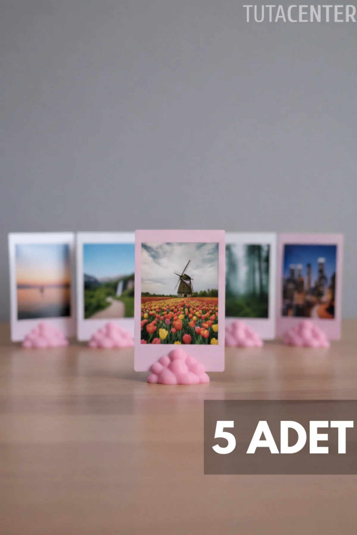 Bulut şekilli fotoğraf tutucu 5’li set, masa üstü dekorasyonunu hem düzenli hem de estetik hale getirir. Plastik malzemeden üretilmiş olan bu dekoratif fotoğraf standları; fotoğraf, kart, not, polaroid ve küçük görselleri dik şekilde sergilemek için idealdir.