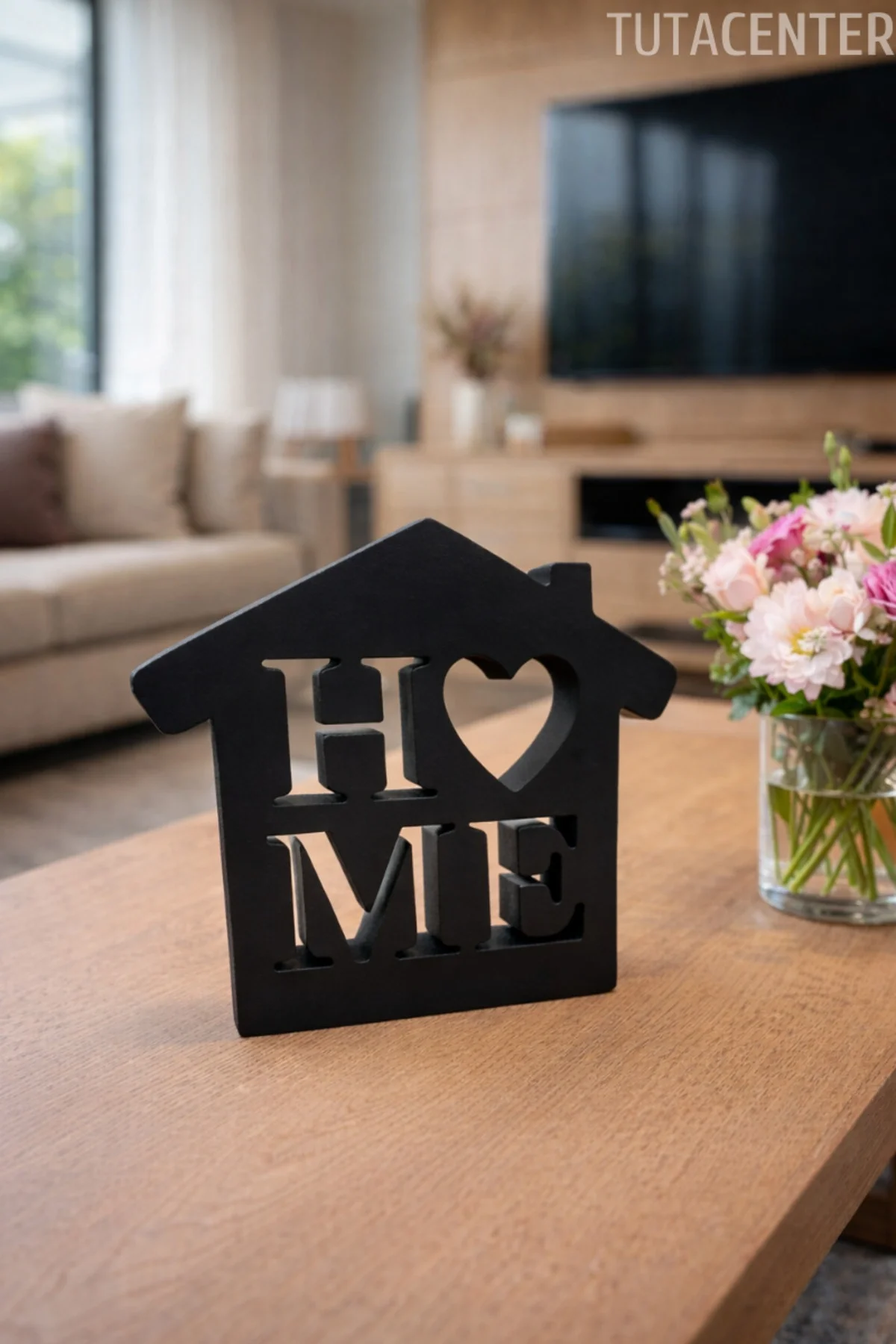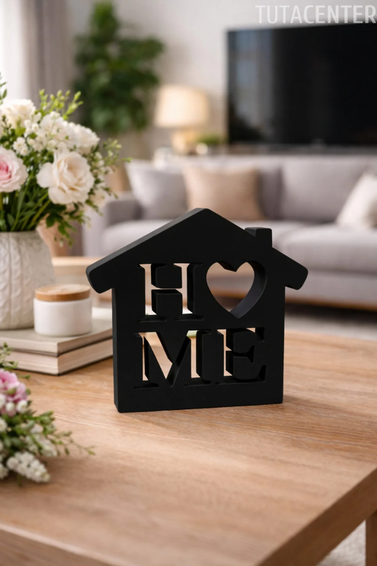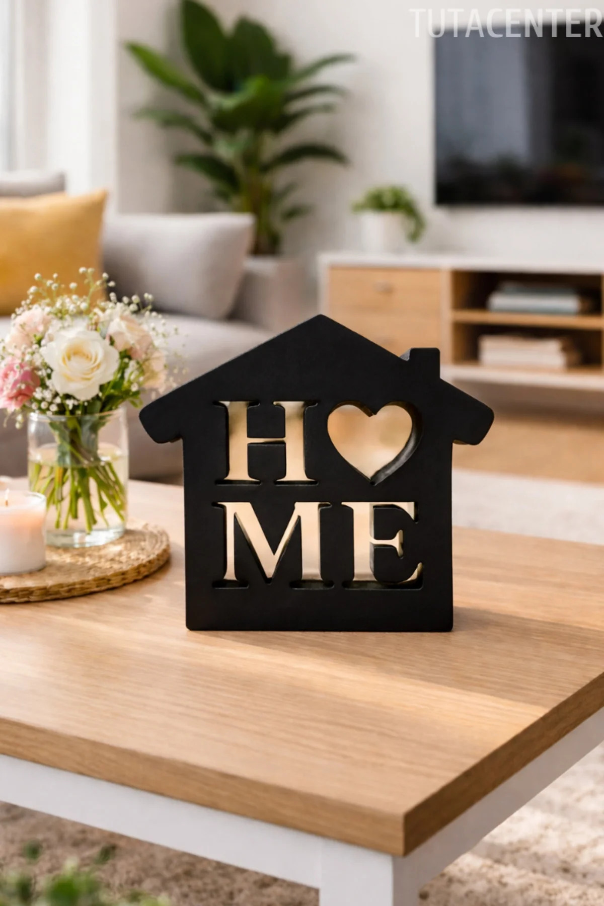 • Kalp detaylı HOME yazısı, ev dekorasyonunda sevgi ve samimiyet hissi oluşturur.