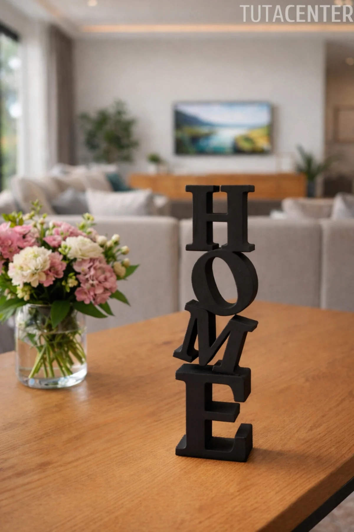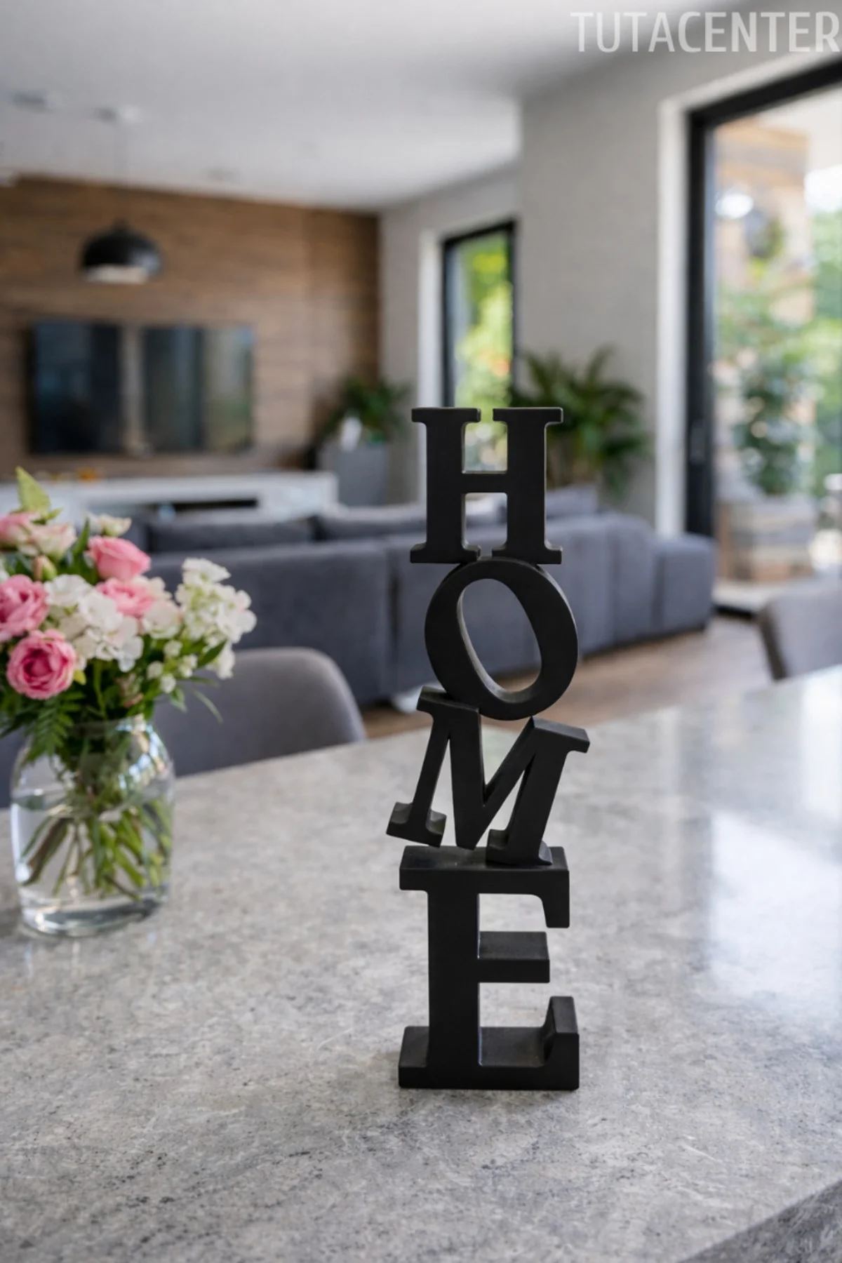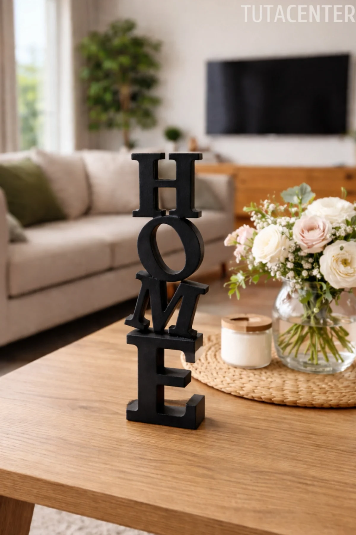 HOME yazısı, ev dekorasyonunda sevgi ve samimiyet hissi oluşturur.