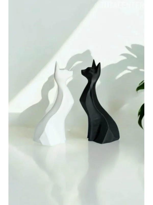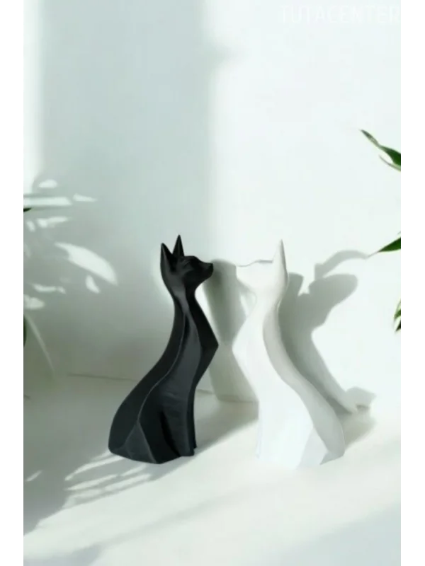 İkili Aşık Kediler Biblo - Dekoratif İkili Kedi Figürü Modern