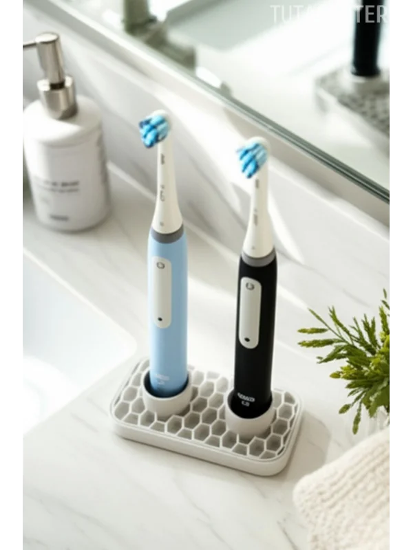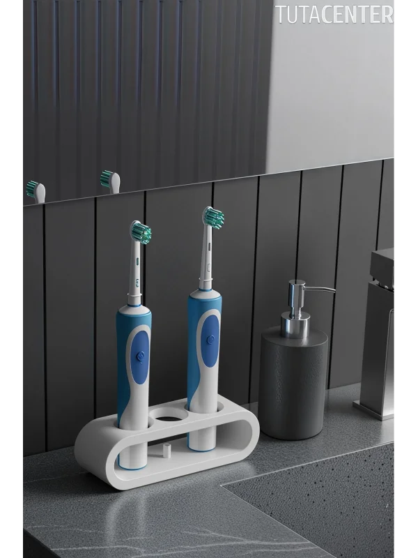 Tahliyeli Elektrikli Diş Fırçası Tutucu (Şarjlı Diş Fırçası Tutucu Stand 2 Bölmeli)