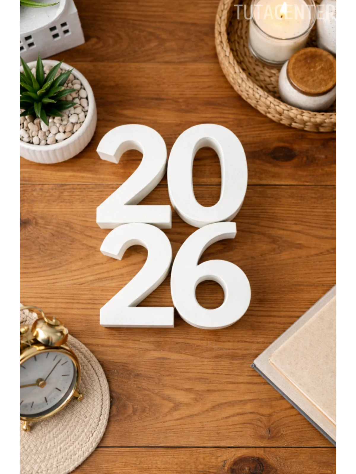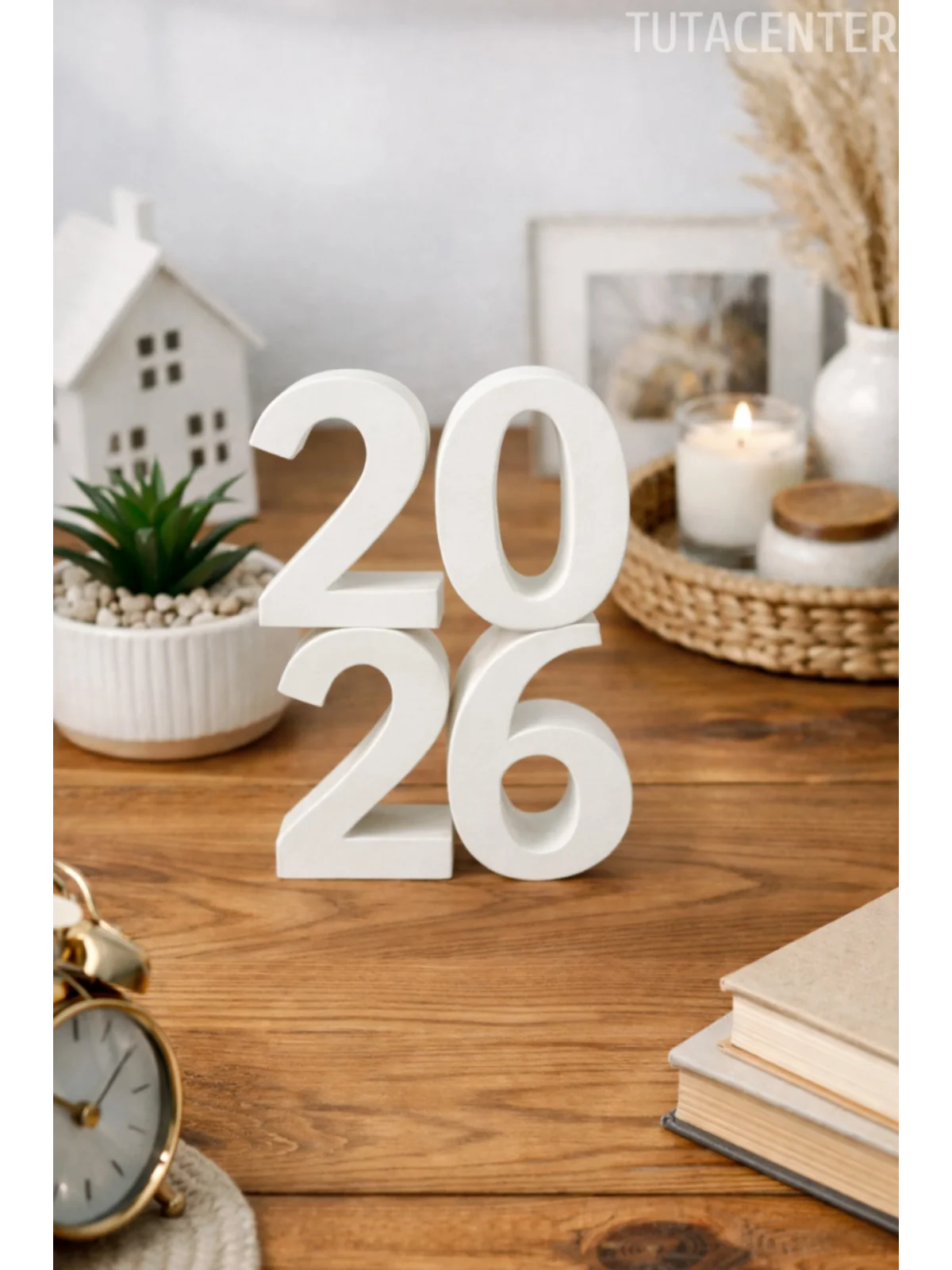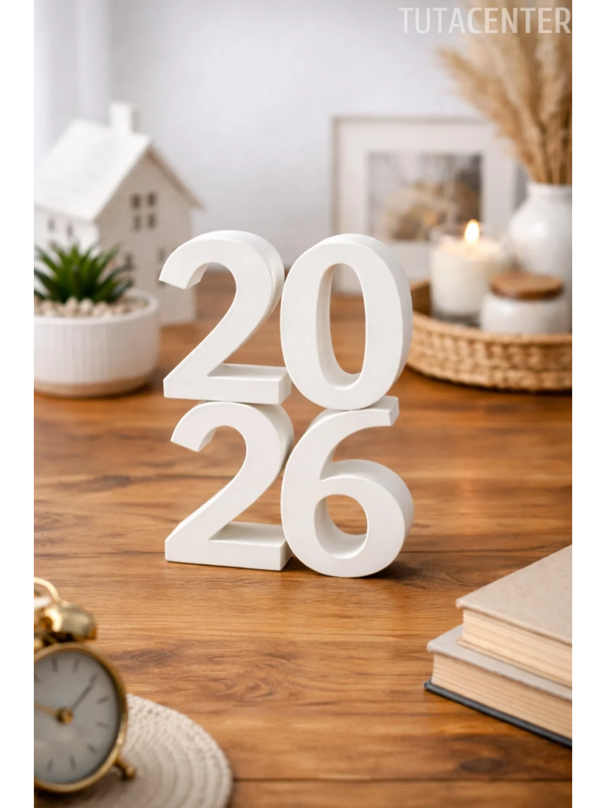 2026 Yazılı Dekoratif Biblo Ve Masaüstü Dekor 2026 Yazısı Dekoratif Ev Süsü (Plastik)