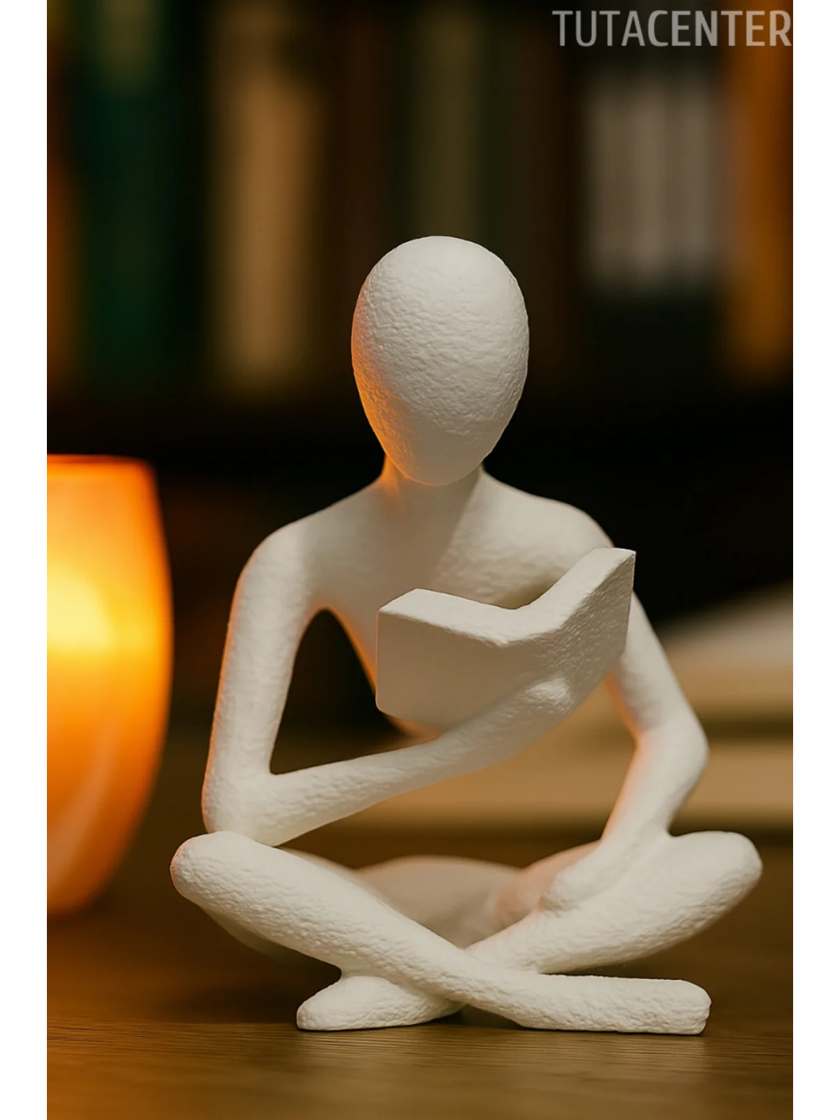 Kitap Okuyan İskandinav Tarzı Biblo Heykel Figür Dekor Dekorasyon (10 CM)