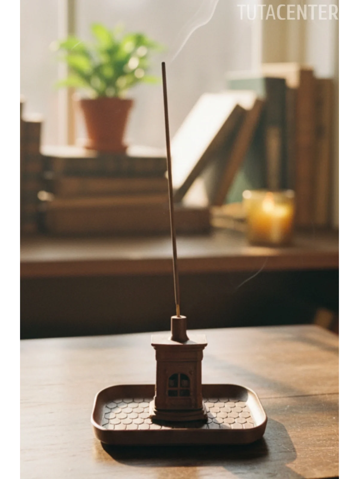 Mini Şömine Temalı Kahverengi Plastik Tütsülük Buhurdanlık – Dekoratif ve Şık Çubuk Tütsü Tutucu