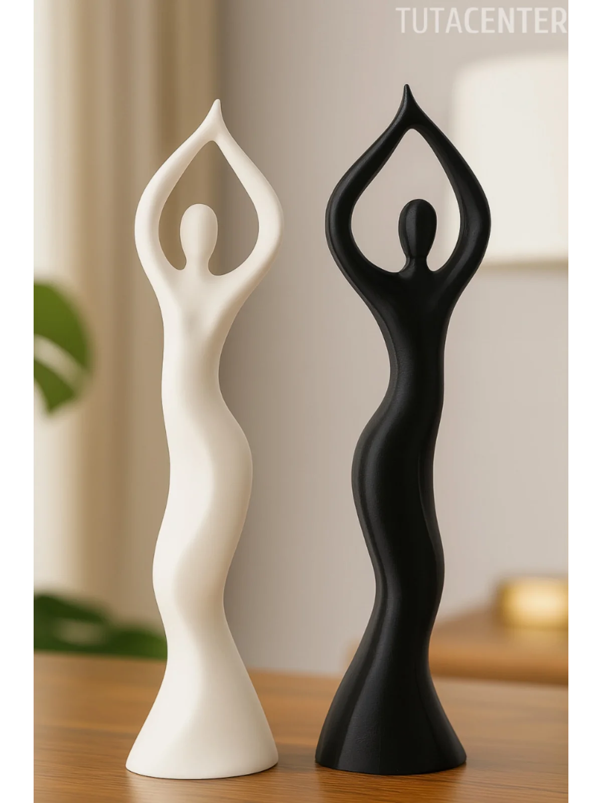 2'li Dans Eden Kadın Heykel Takımı Iskandinav Tarzı Biblo Heykel Figür (17CM)