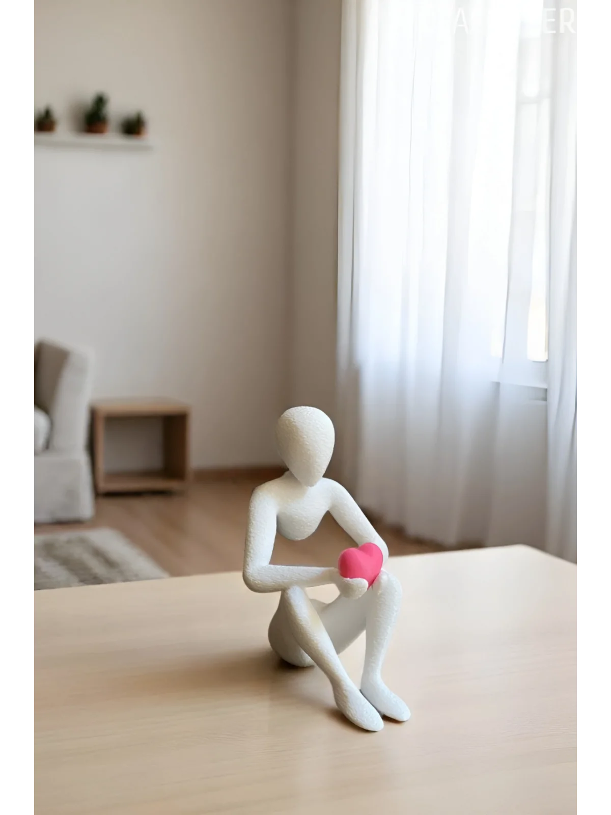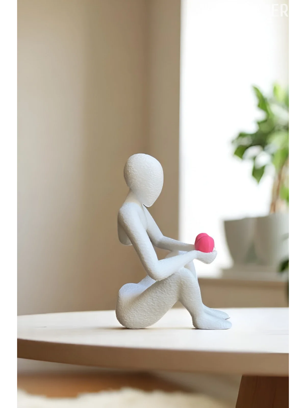 Duygusal Kalp Tutan İskandinav Tarzı Biblo Heykel Figür Dekor Dekorasyon