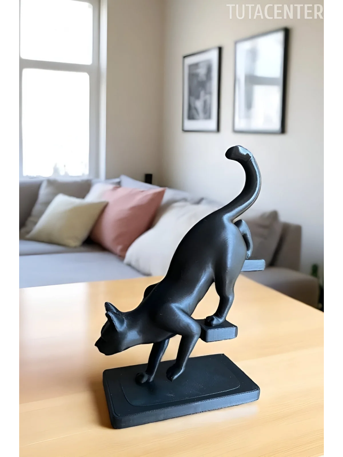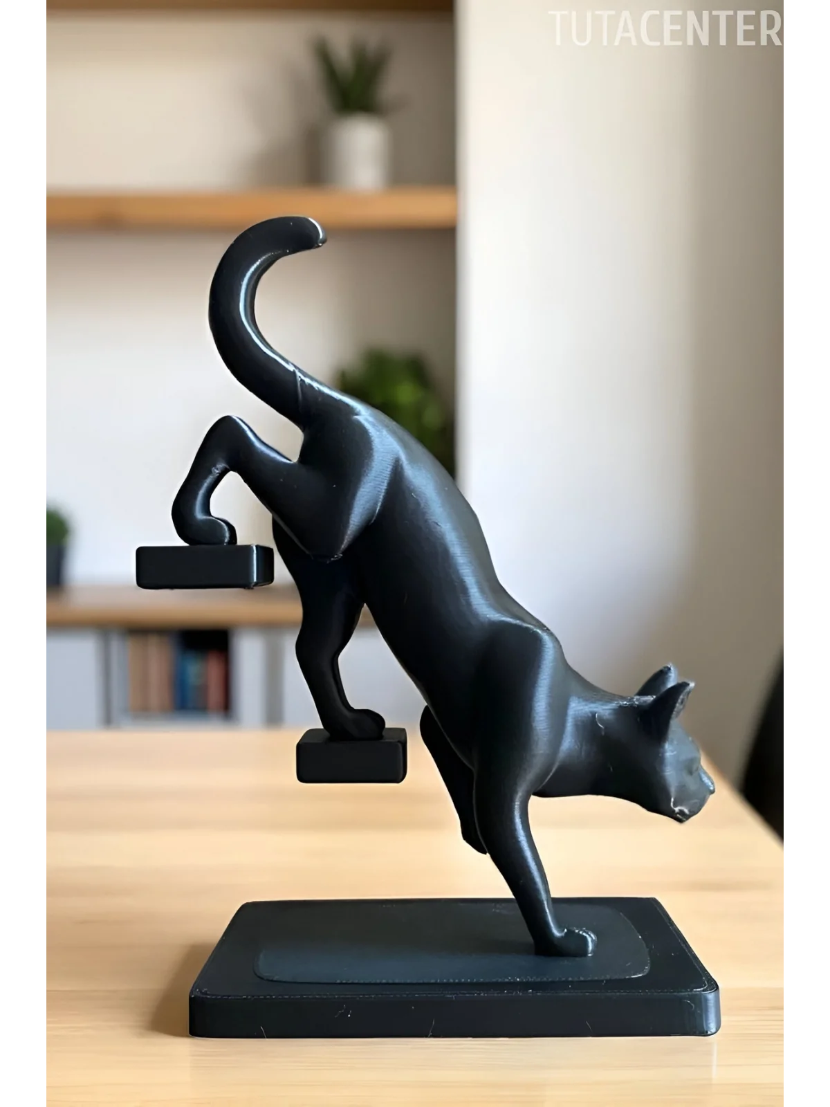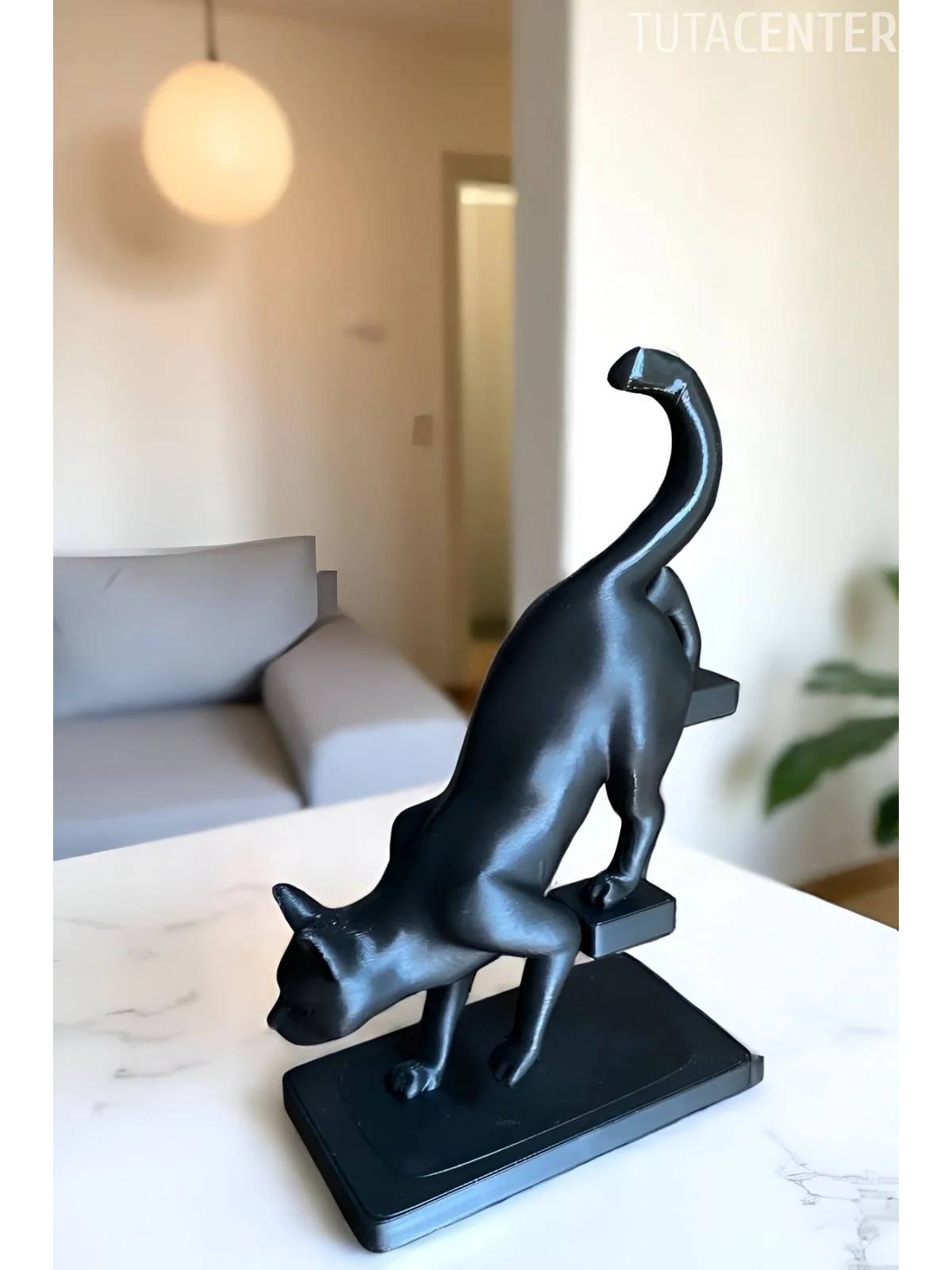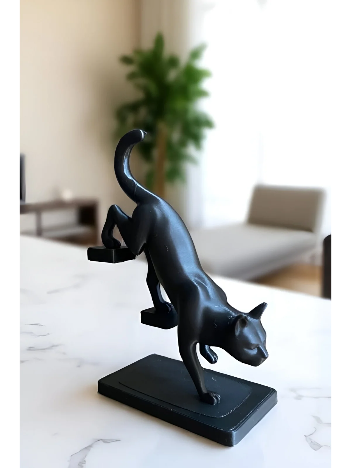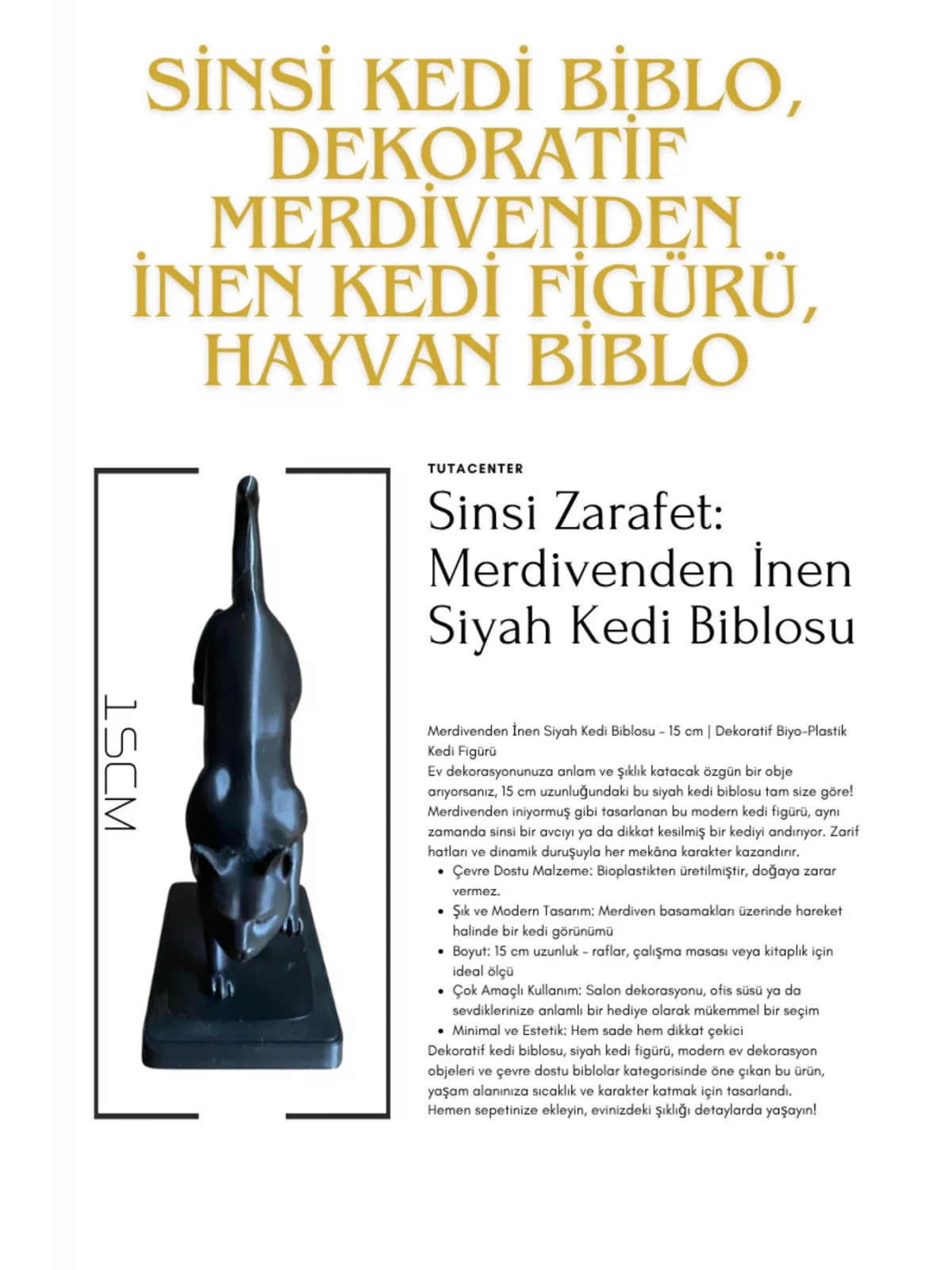 SİNSİ KEDİ BİBLO, DEKORATİF MERDİVENDEN İNEN KEDİ FİGÜRÜ, HAYVAN BİBLO