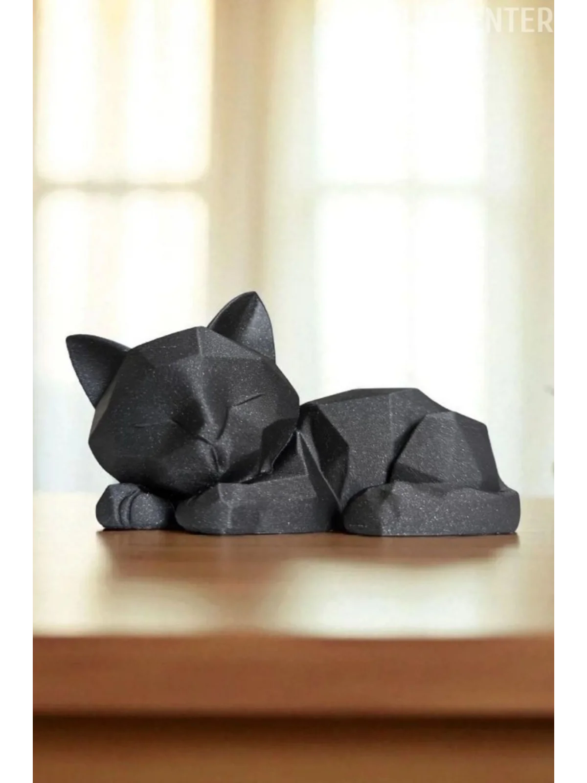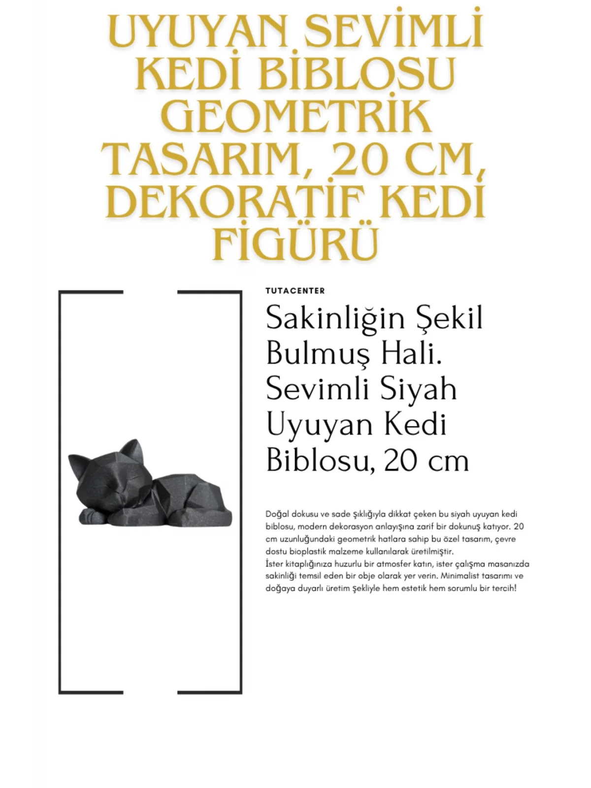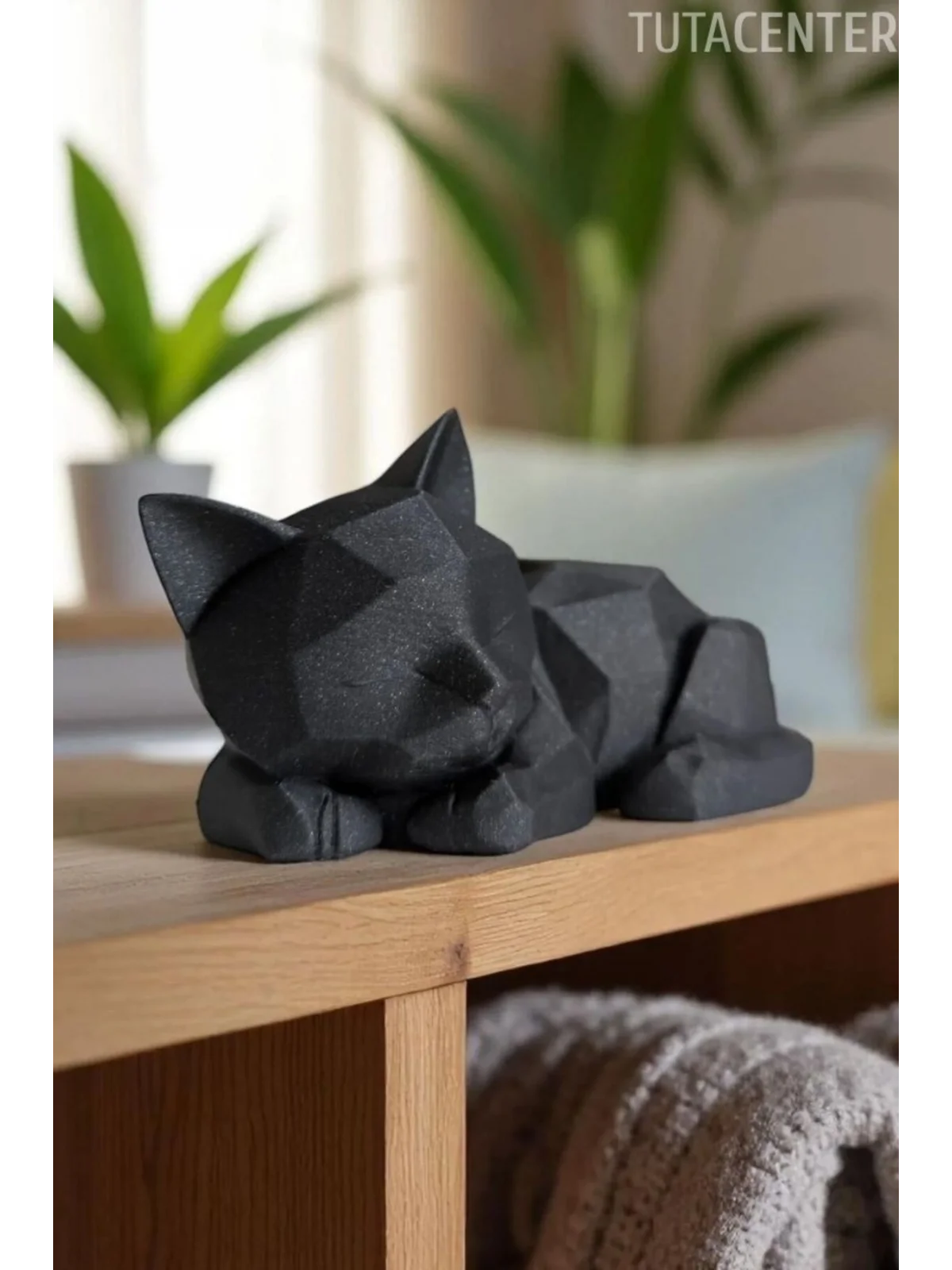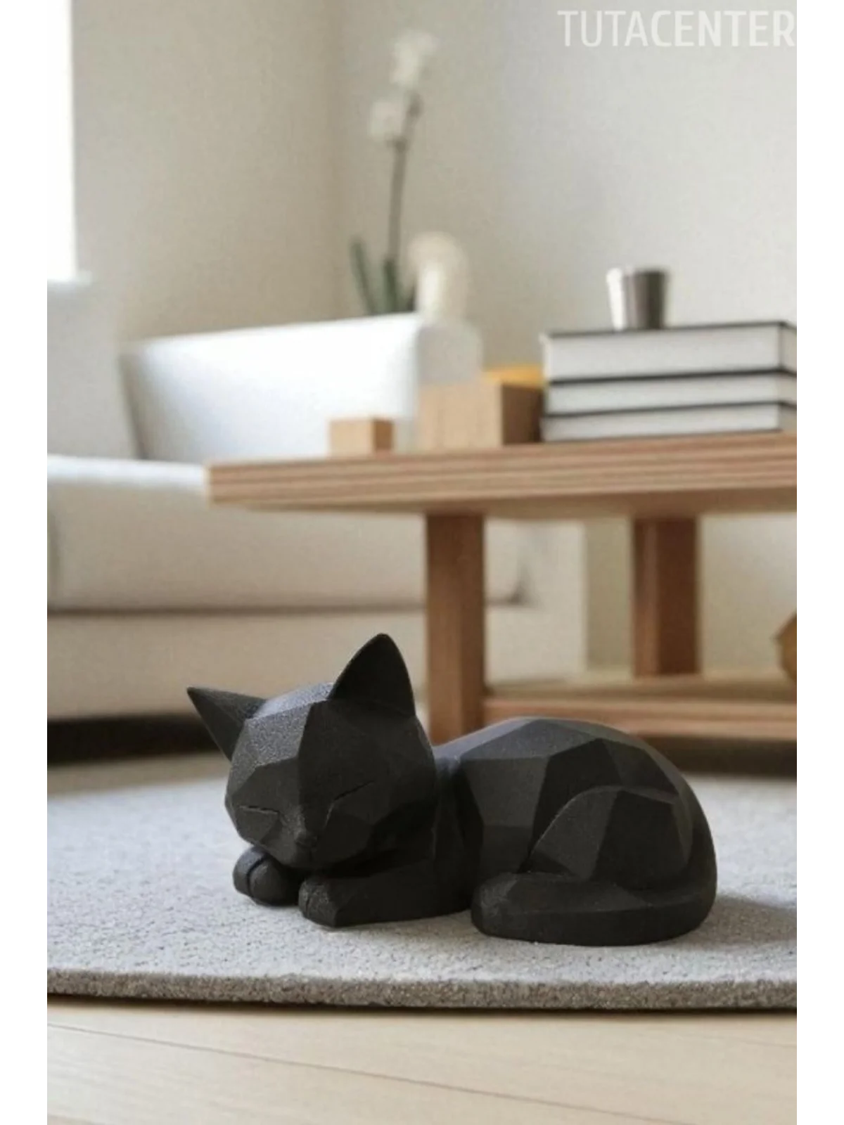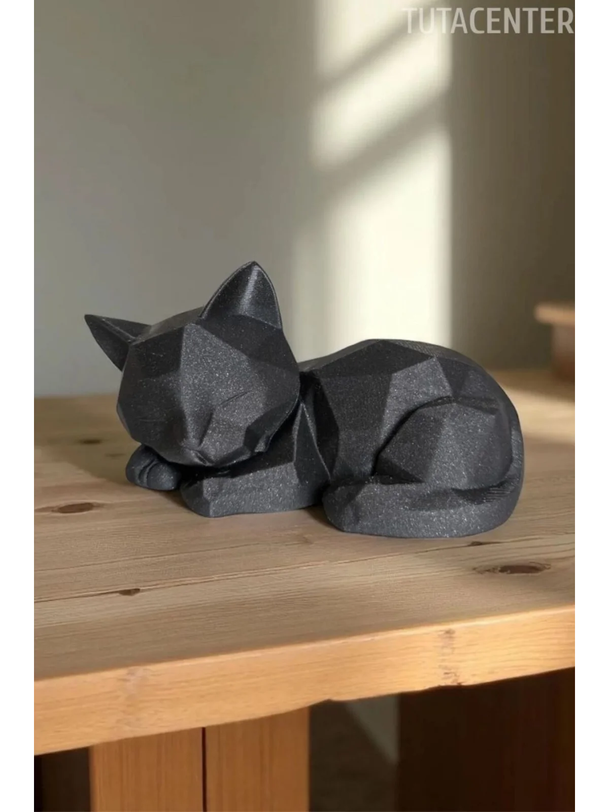 Uyuyan Sevimli Kedi Biblosu – Geometrik Tasarım, 20 cm, Dekoratif Kedi Figürü