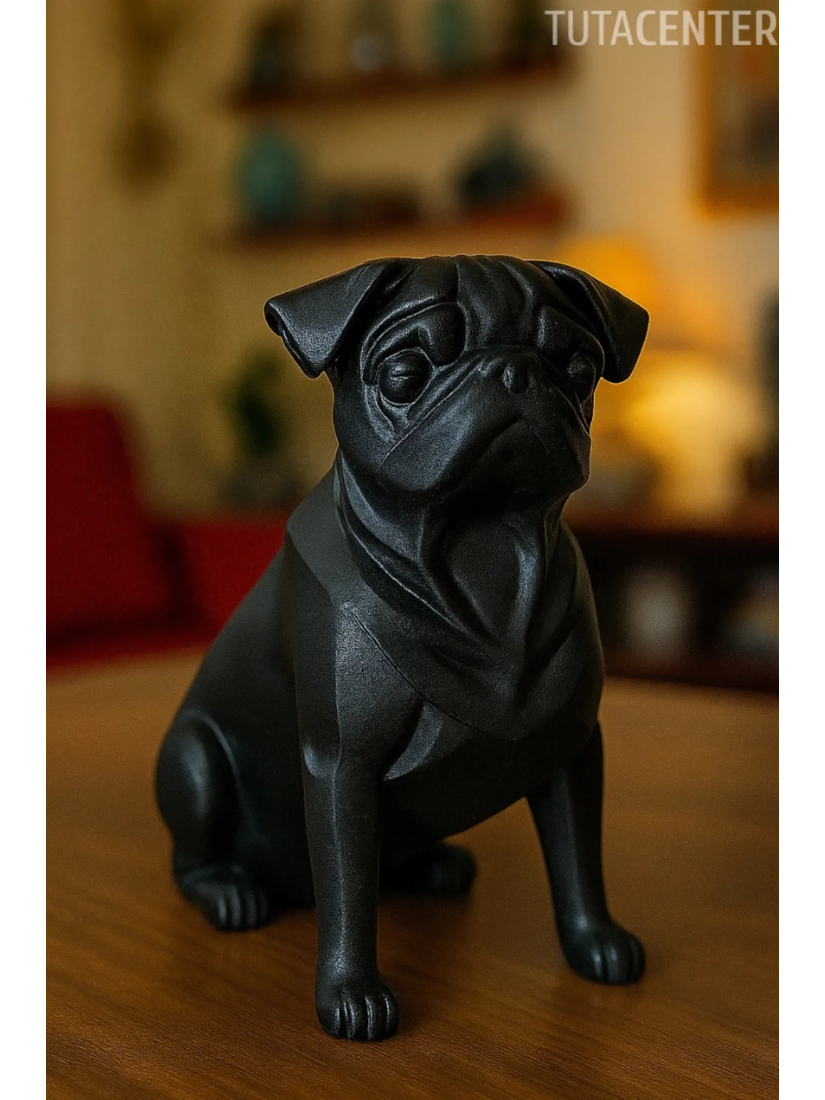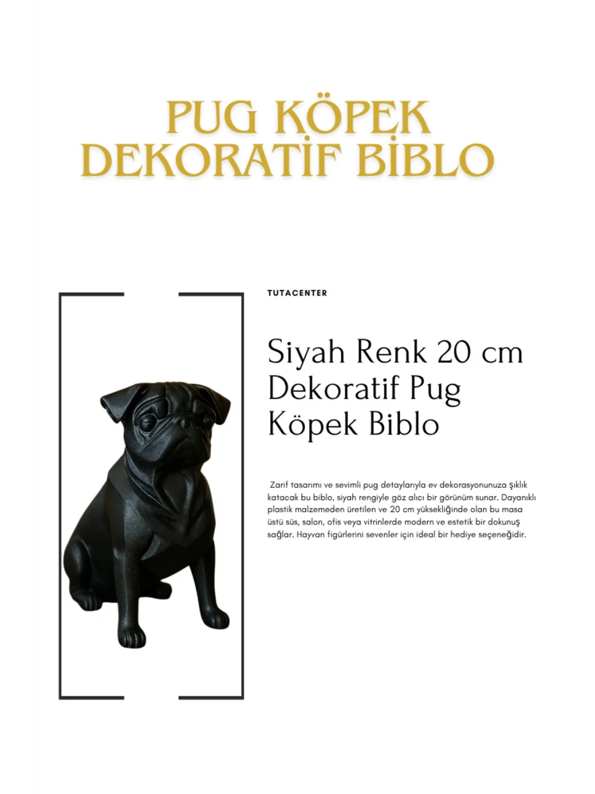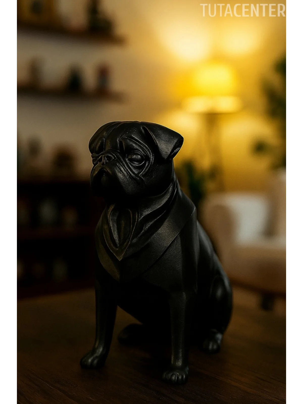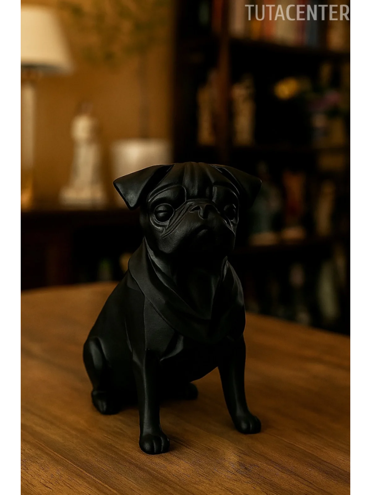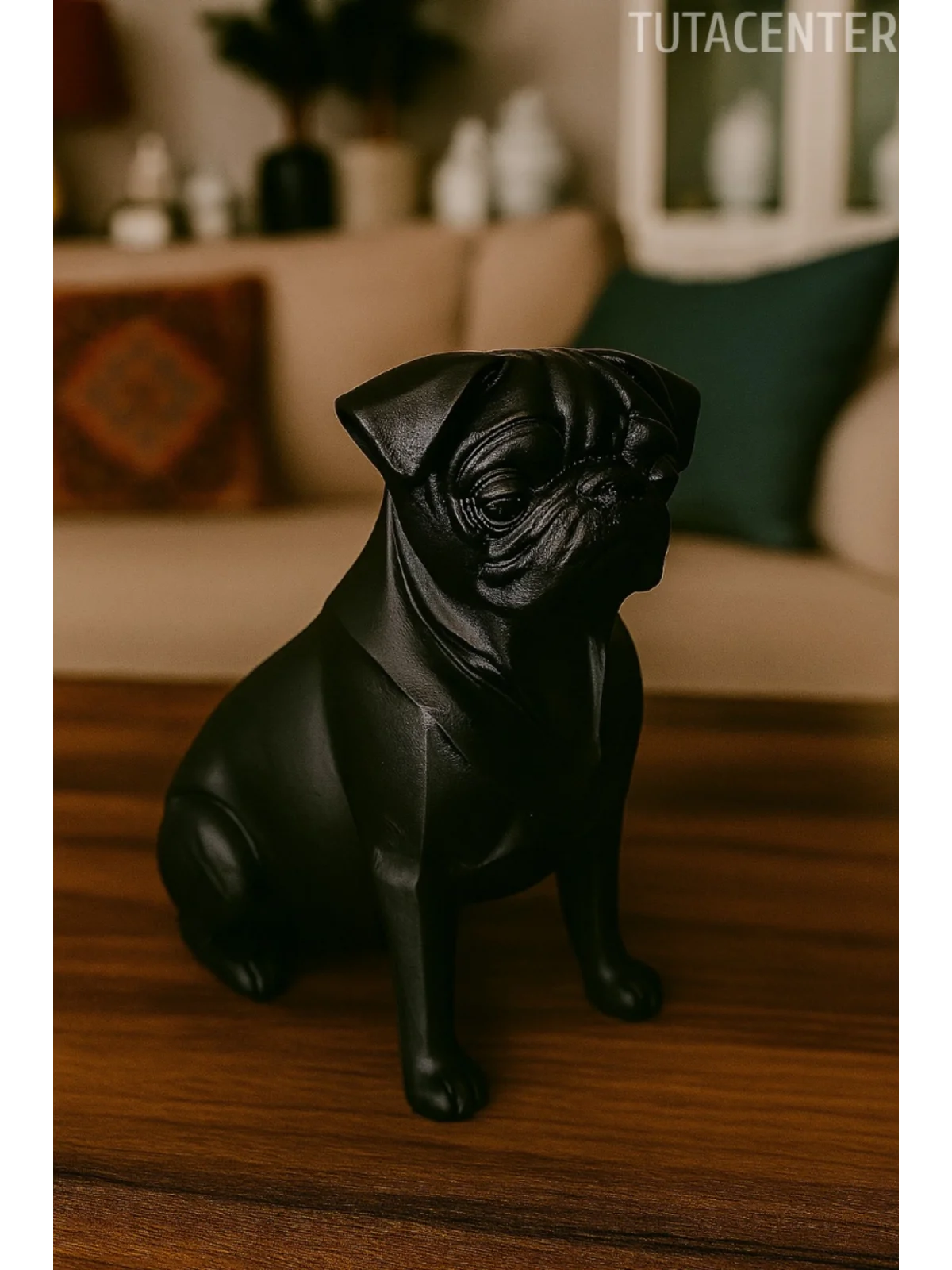 Pug Köpek Dekoratif Biblo - (Siyah Renk) 20CM - PLASTİK Premium Biblo Modeli