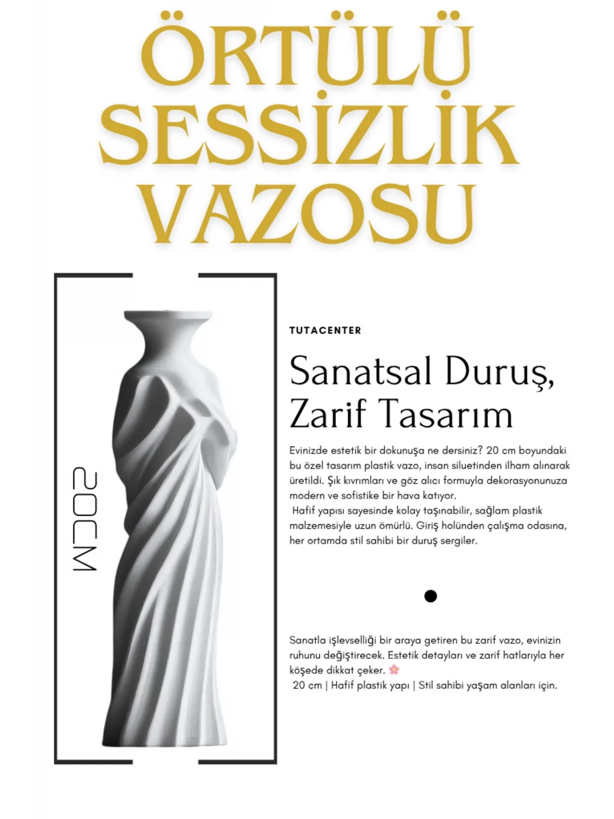 Örtülü Sessizlik Vazosu ( Dekoratif Sanatsal Plastik Vazo ) 20cm
