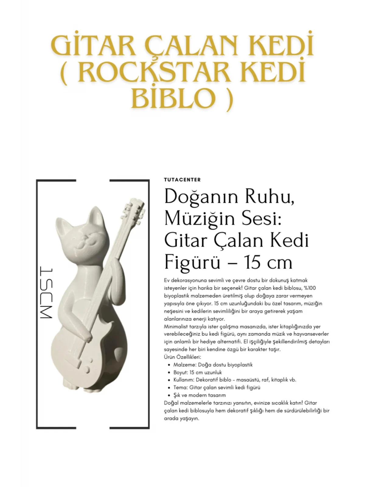 Gitar Çalan Kedi Biblo Modern Biblo 15CM Plastik ( Rockstar Kedi Biblo )