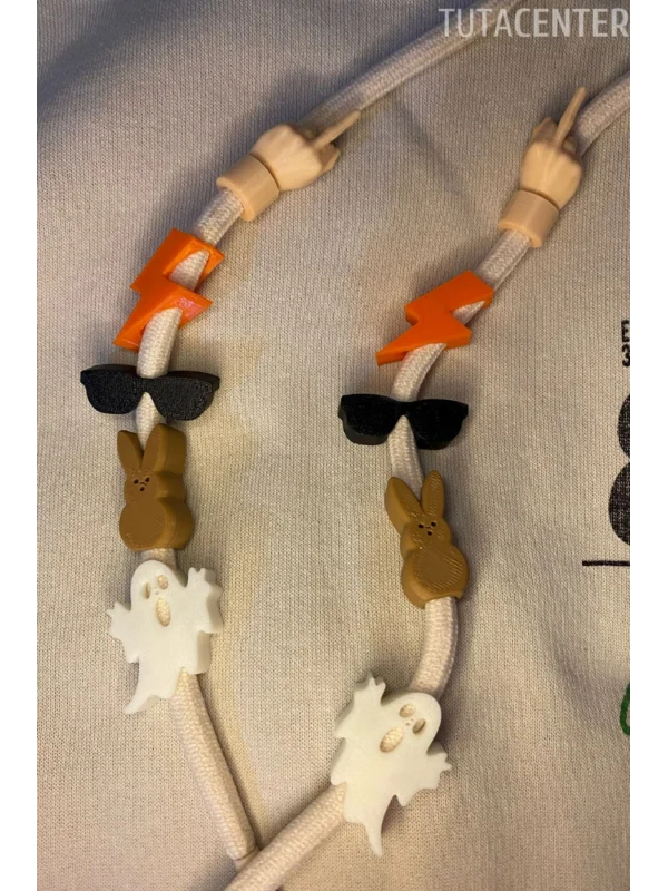 Yıldırım, Hayalet, Gözlük, Orta parmak, Playboy Tavşan Şekilli Bağcık İp Süsü 10 ADET Karışık Set