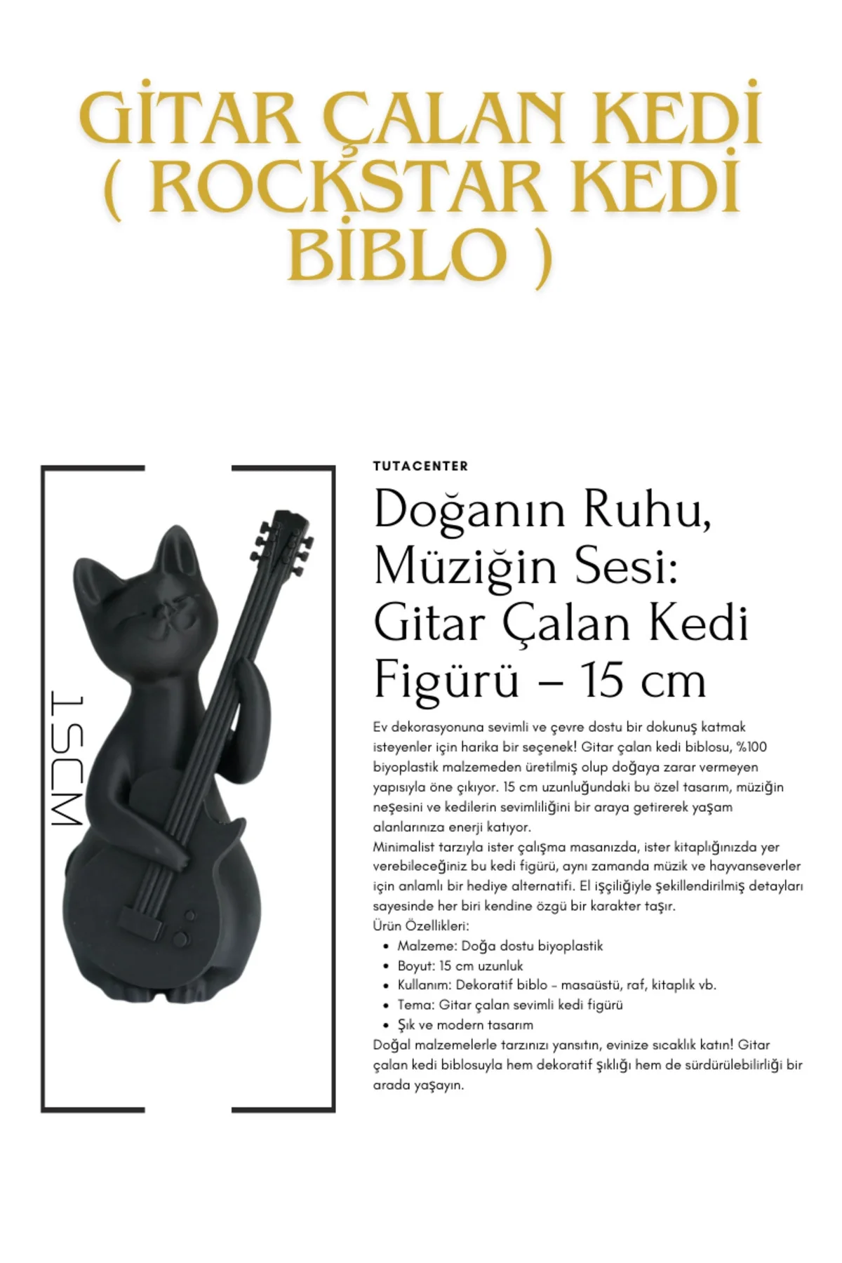 Ev dekorasyonuna sevimli ve çevre dostu bir dokunuş katmak isteyenler için harika bir seçenek! Gitar çalan kedi biblosu, %100 biyoplastik malzemeden üretilmiş olup doğaya zarar vermeyen yapısıyla öne çıkıyor. 15 cm uzunluğundaki bu özel tasarım, müziğin neşesini ve kedilerin sevimliliğini bir araya getirerek yaşam alanlarınıza enerji katıyor.