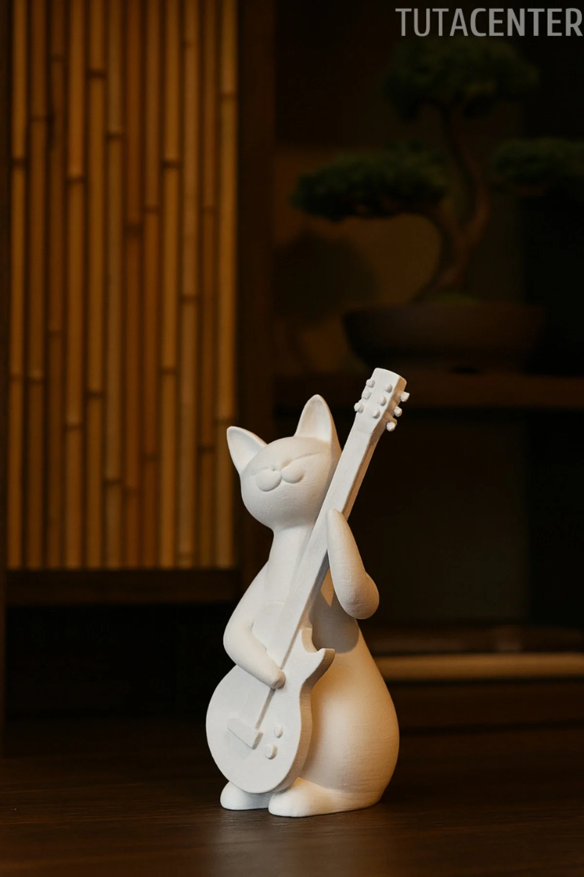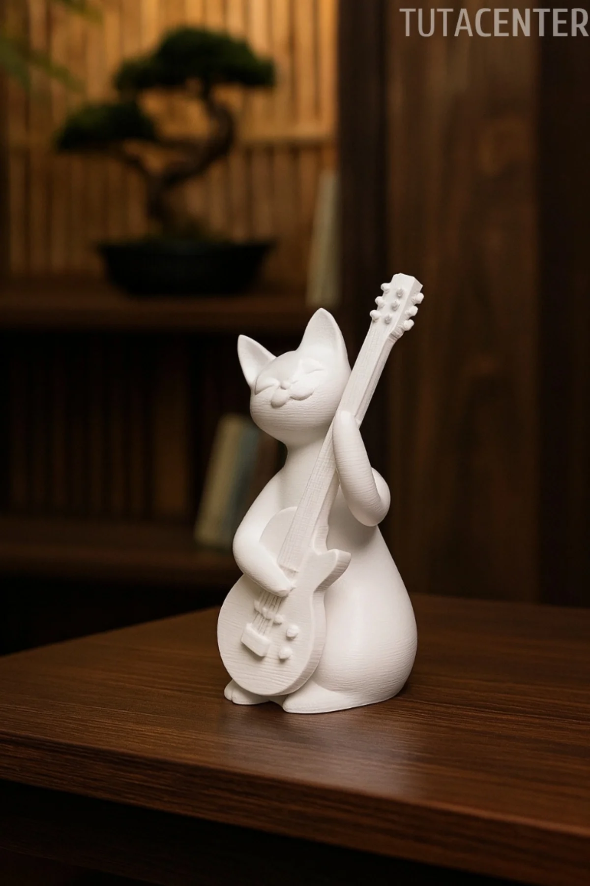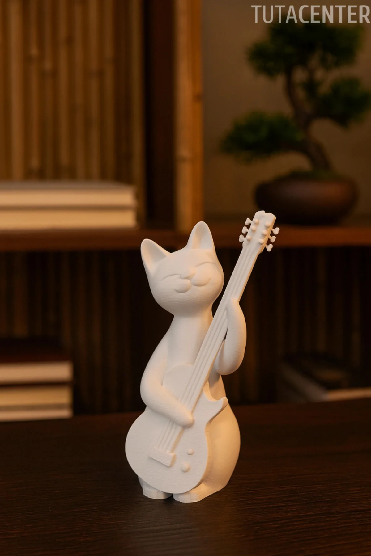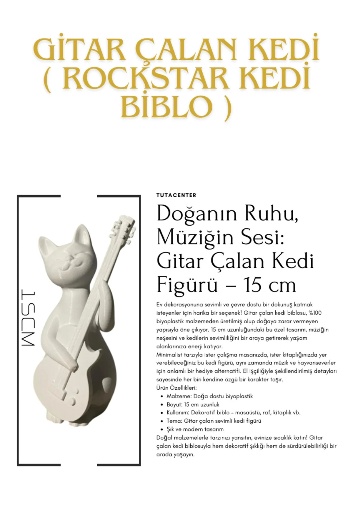 Gitar Çalan Kedi Biblo Modern Biblo 15CM Plastik ( Rockstar Kedi Biblo )