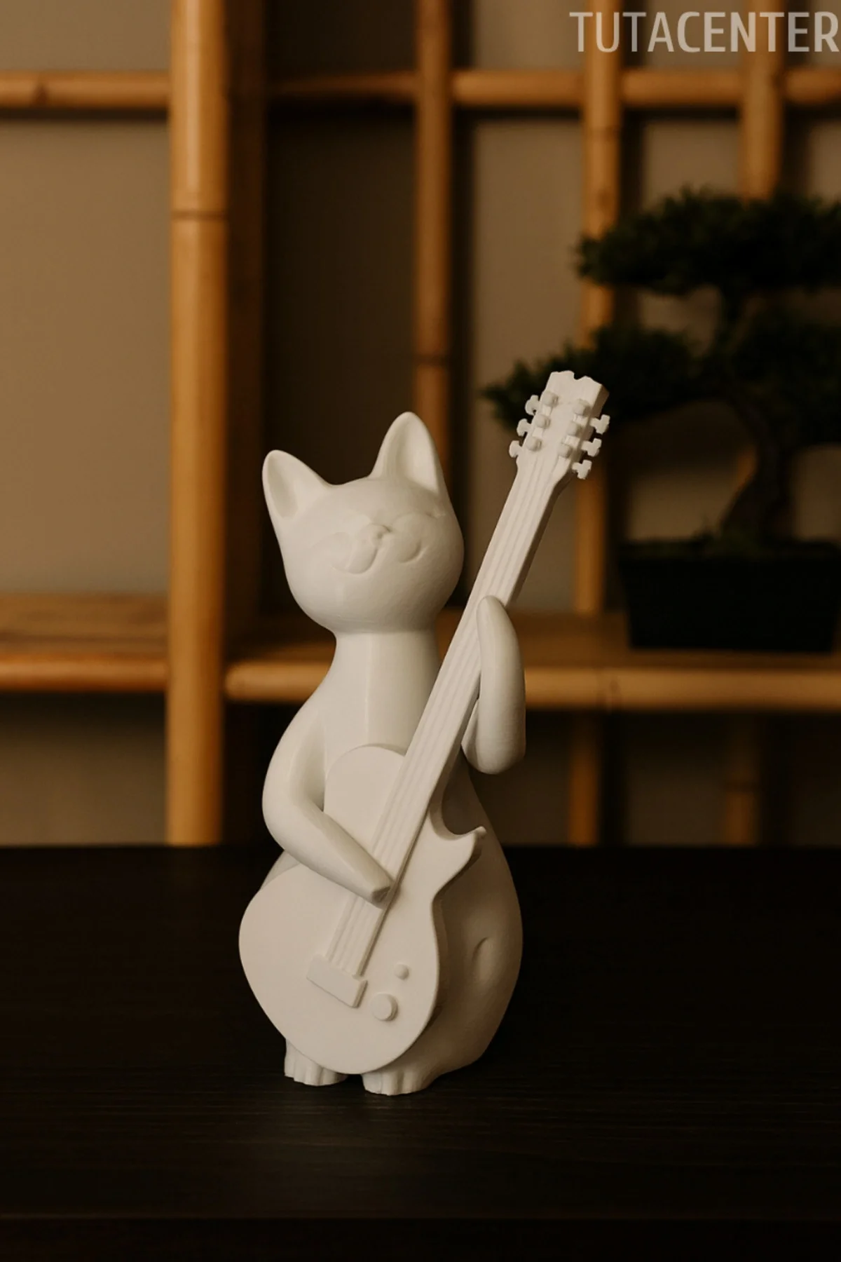 Gitar Çalan Kedi Biblo Modern Biblo 15CM Plastik ( Rockstar Kedi Biblo )