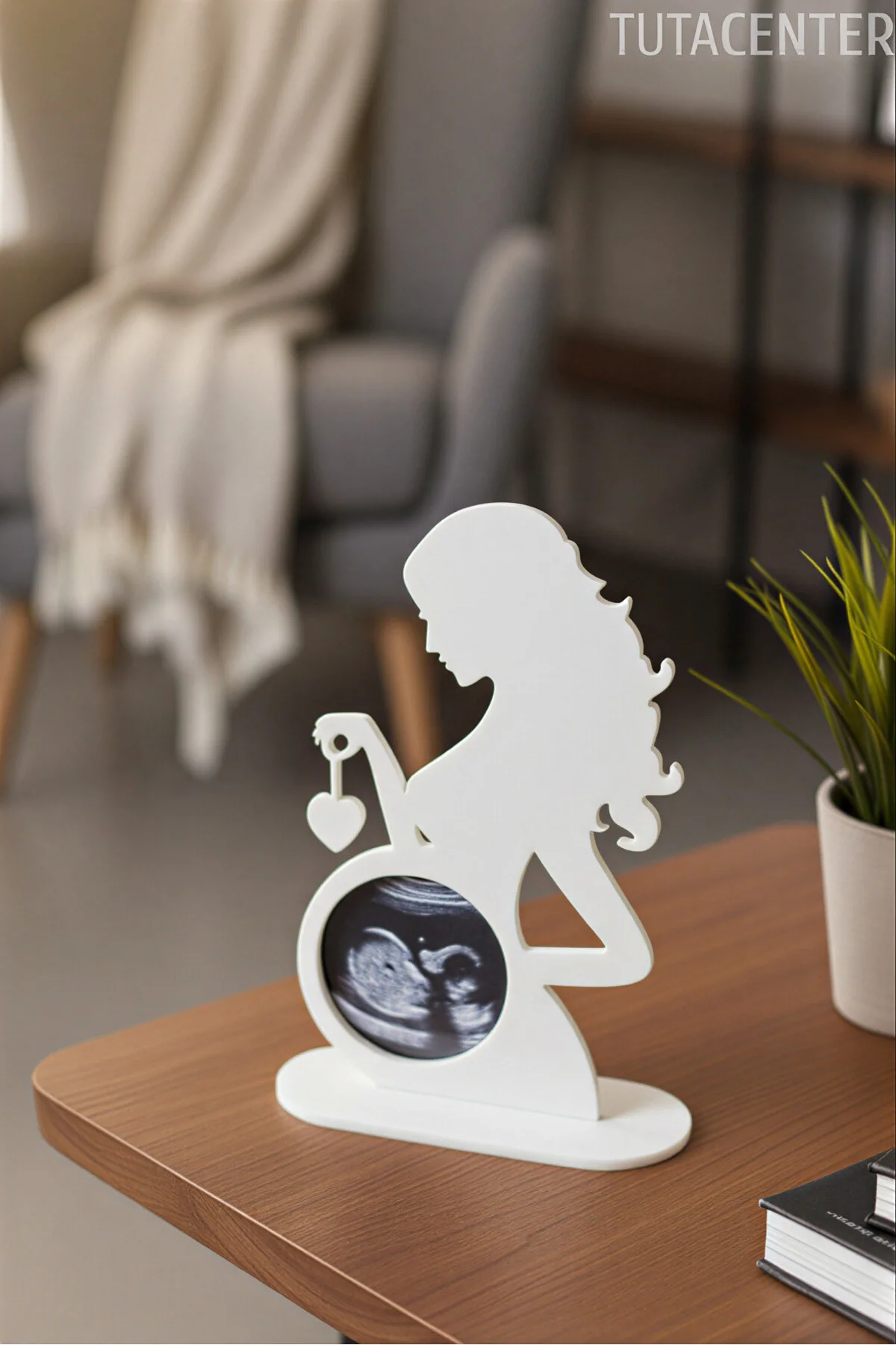 Anne adaylarının en özel anlarını ölümsüzleştirmek için tasarlanmış hamile ultrason foto çerçevesi, anlamlı ve duygusal bir dekoratif üründür. Anne silüeti formundaki özel tasarımı sayesinde ultrason fotoğrafınızı şık bir şekilde sergilemenizi sağlar.