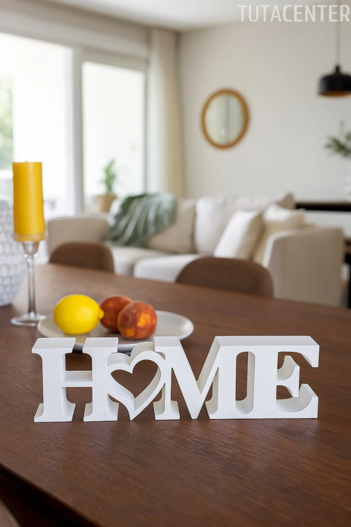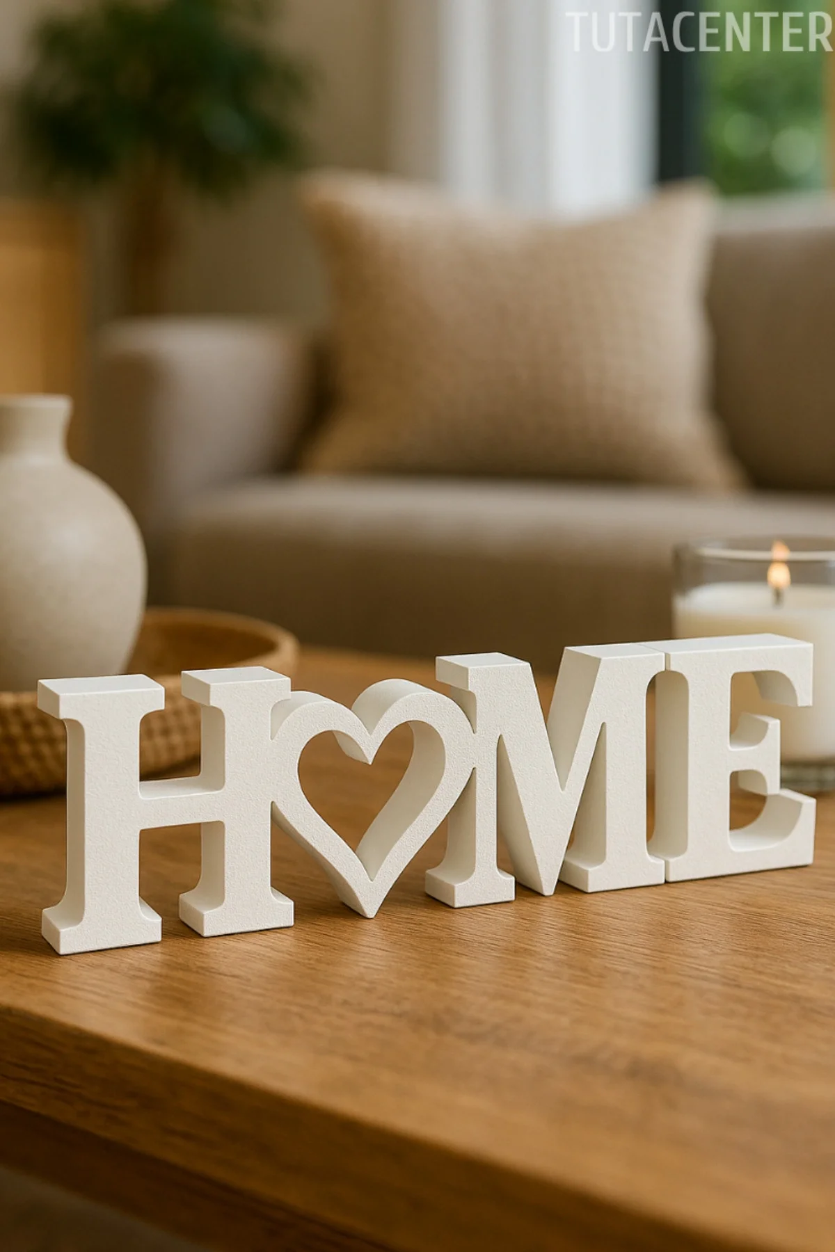 • Kalp detaylı HOME yazısı, ev dekorasyonunda sevgi ve samimiyet hissi oluşturur.