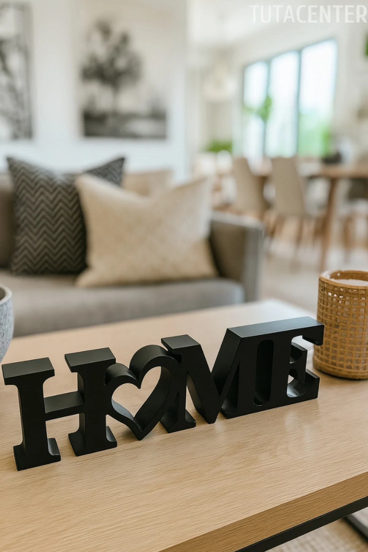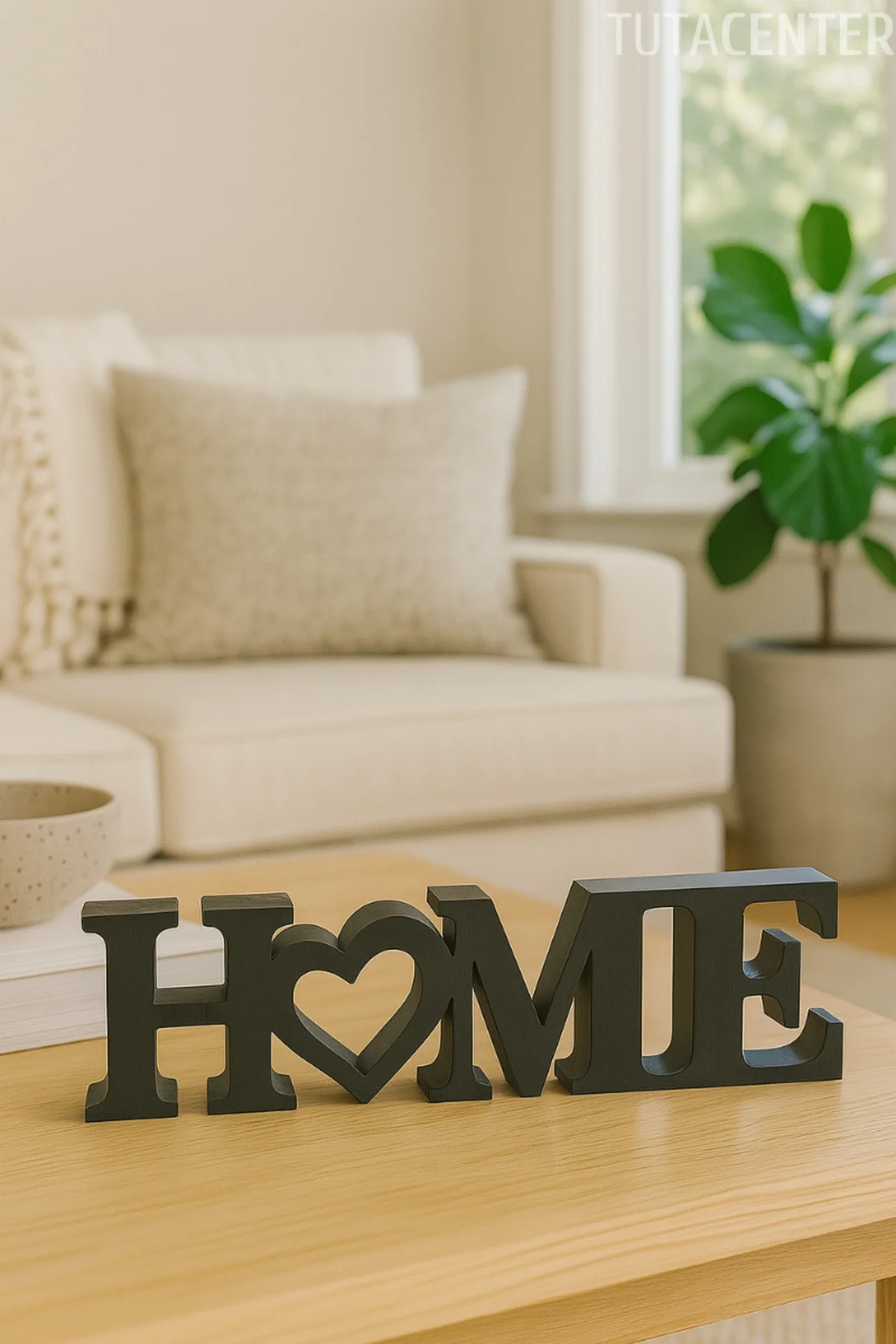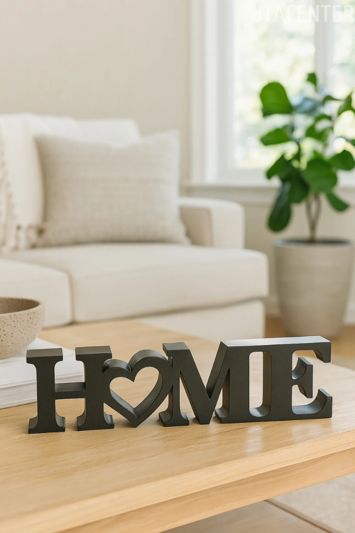 • Kalp detaylı HOME yazısı, ev dekorasyonunda sevgi ve samimiyet hissi oluşturur.