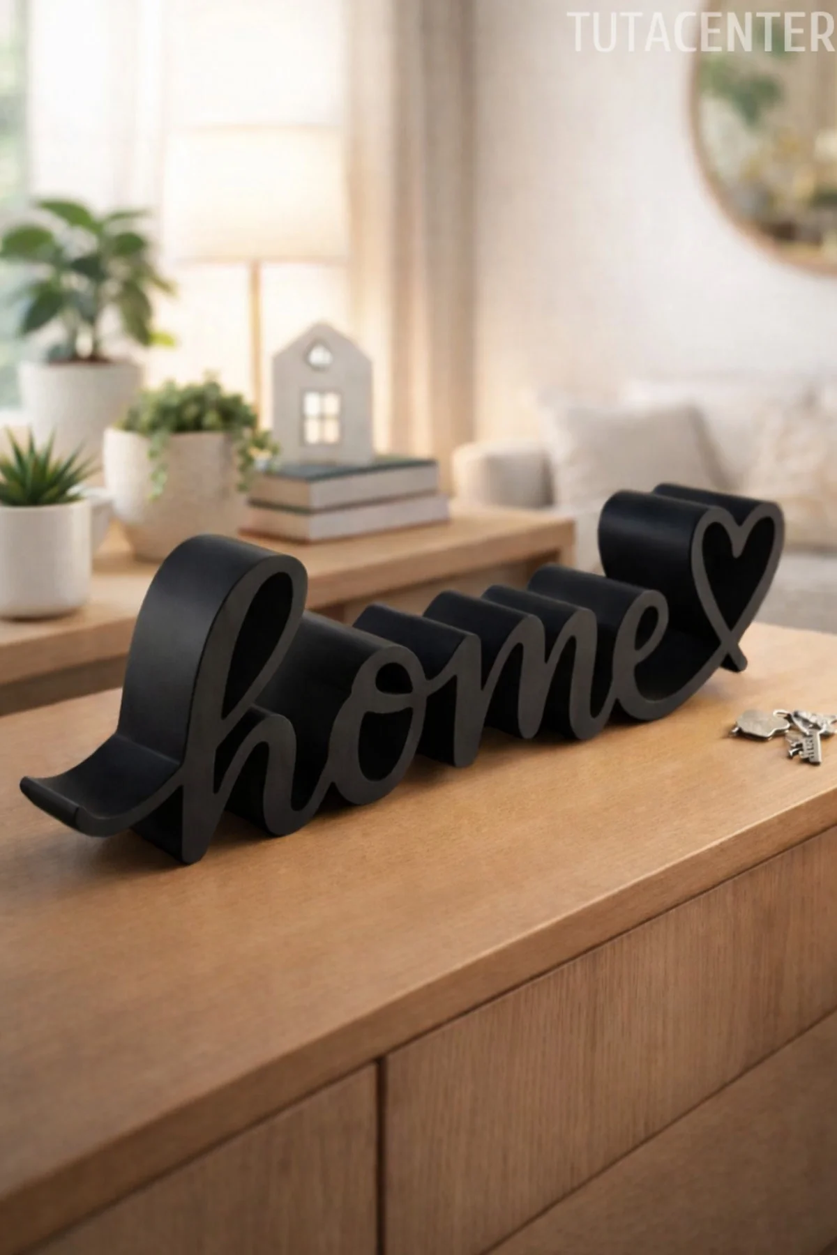 HOME yazısı, ev dekorasyonunda sevgi ve samimiyet hissi oluşturur.