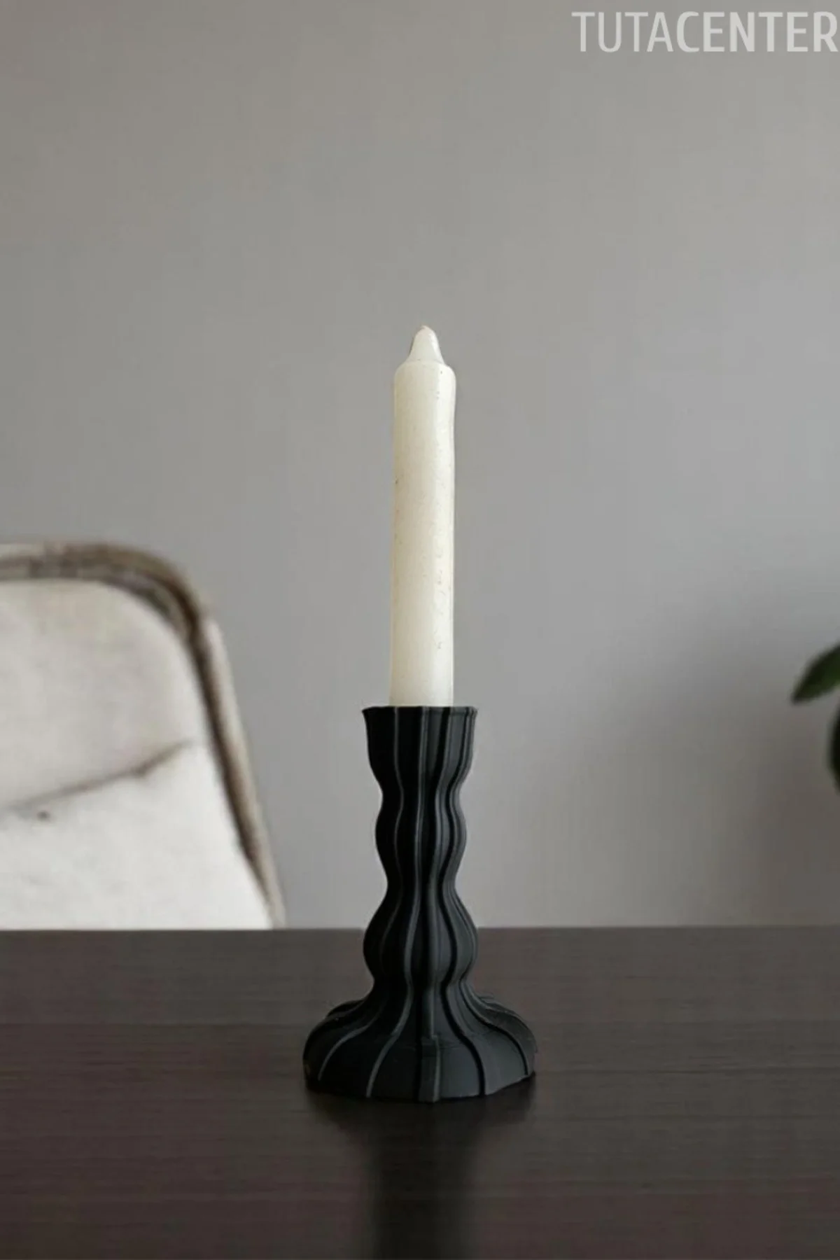 Mat siyah rengi ve sade formuyla bulunduğu ortamda zarif bir vurgu yaratan bu mumluk, minimal yaşam alanlarına modern bir karakter kazandırmak isteyenler için ideal bir seçenektir.