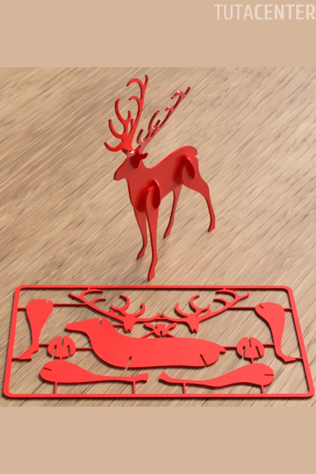 Kırmızı Geyik Kit Card Demonte 3D Yapboz 1 Adet