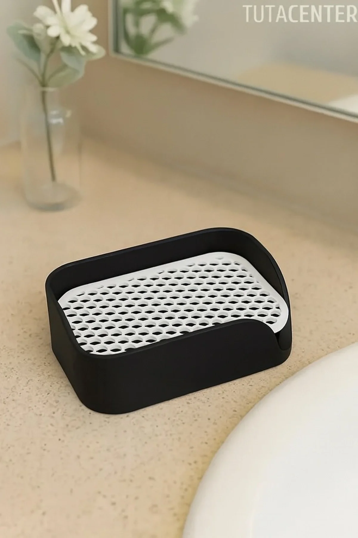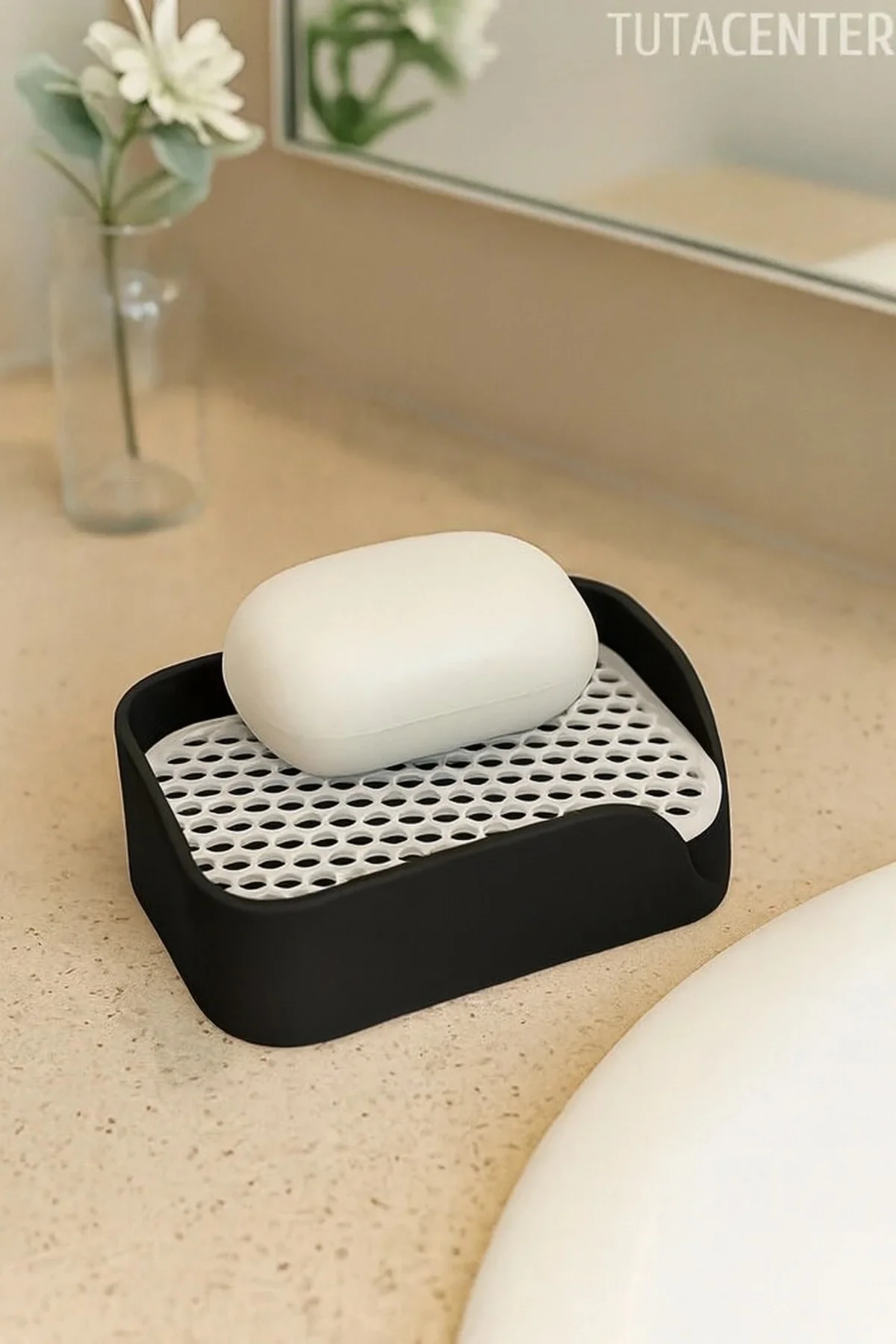 Modern çizgilere sahip bu beyaz sabunluk, sağlam yapısı ve kaymaz tabanı sayesinde sabunlarınızın kaymasını önler. İç kısmındaki siyah petek desenli süzgeç, suyun alt hazneye süzülmesini sağlayarak sabunun yumuşamasını engeller, böylece sabununuz daha uzun süre dayanır.