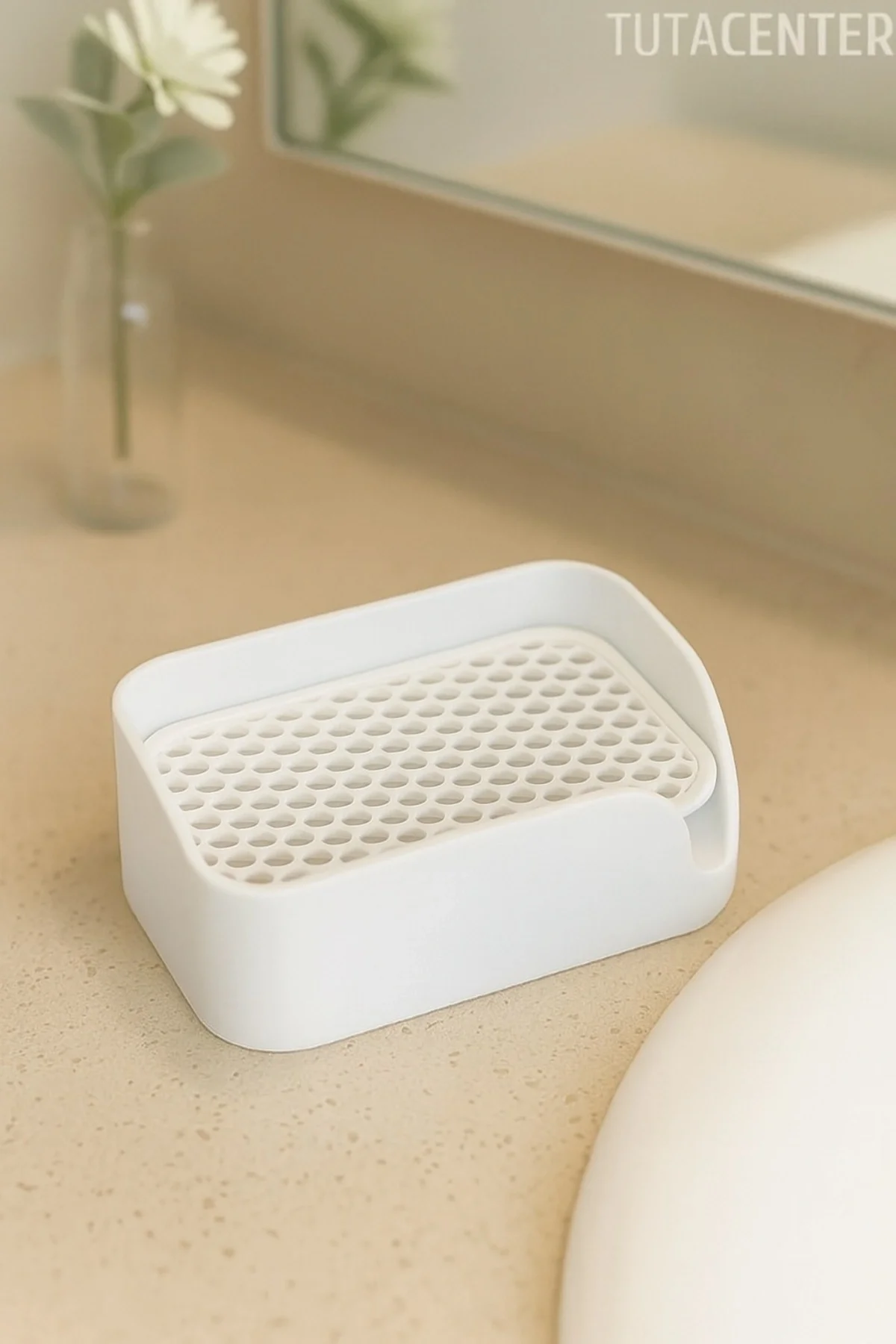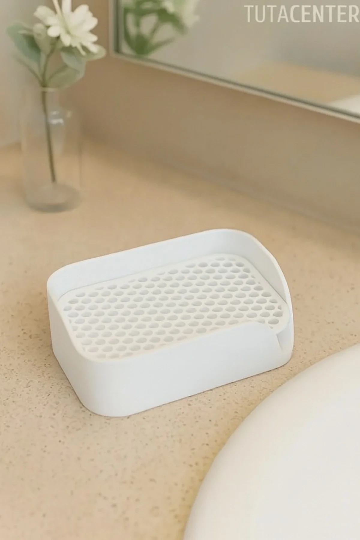 Modern çizgilere sahip bu beyaz sabunluk, sağlam yapısı ve kaymaz tabanı sayesinde sabunlarınızın kaymasını önler. İç kısmındaki siyah petek desenli süzgeç, suyun alt hazneye süzülmesini sağlayarak sabunun yumuşamasını engeller, böylece sabununuz daha uzun süre dayanır.