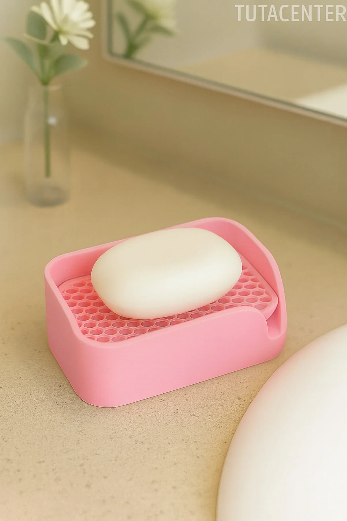 Modern çizgilere sahip bu PEMBE sabunluk, sağlam yapısı ve kaymaz tabanı sayesinde sabunlarınızın kaymasını önler. İç kısmındaki pembe petek desenli süzgeç, suyun alt hazneye süzülmesini sağlayarak sabunun yumuşamasını engeller, böylece sabununuz daha uzun süre dayanır.
