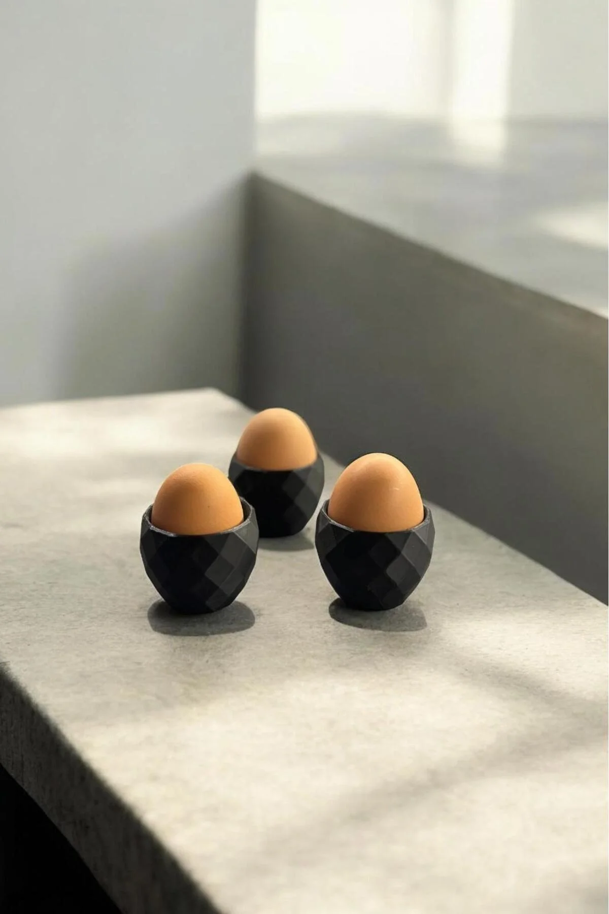 Modern desenli 3'lü siyah plastik yumurtalık seti, şık ve kullanışlı.