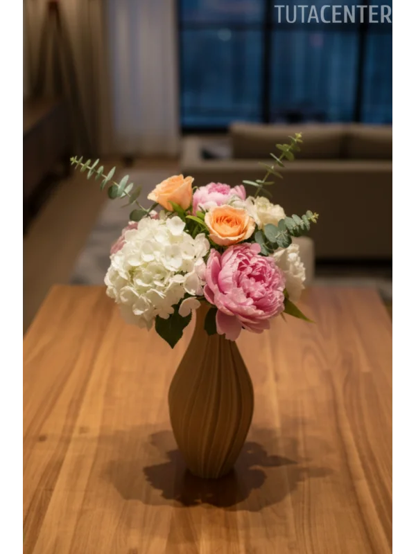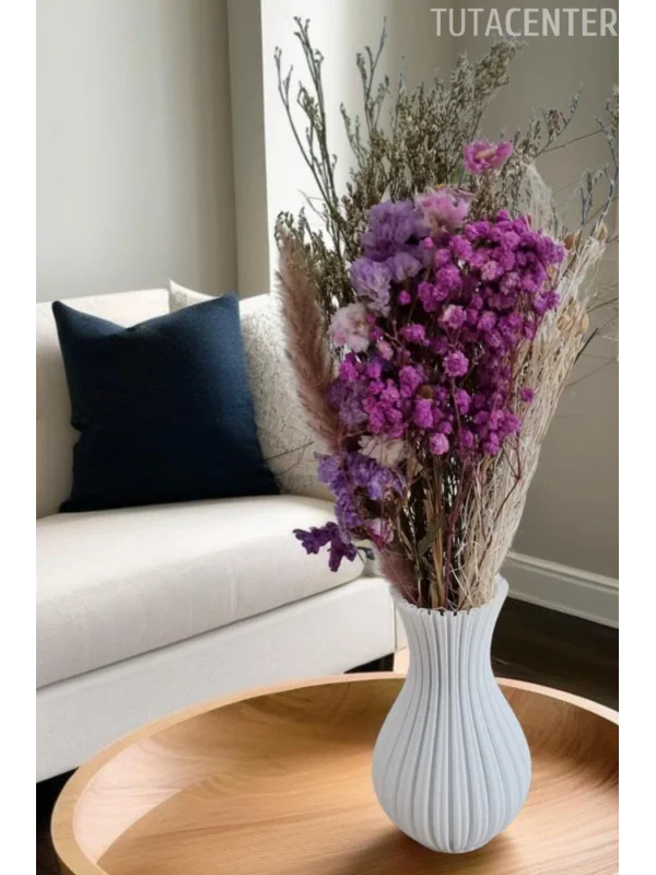 Blok Çiçek Buketi Uyumlu Dekoratif Beyaz Vazo, Modern Tasarım (ÇİÇEKLER DAHİL DEĞİLDİR)
