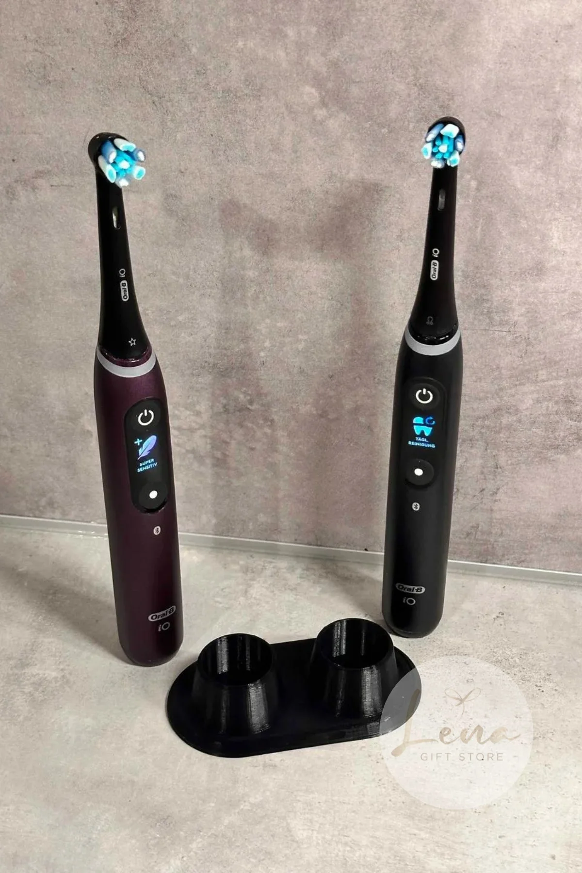 Sadece fırça standı içindir, fırça başlıklarına uygun değildir.; Ürünümüz sadece STAND'dır.; 2 adede kadar şarjlı fırçayı sabitleyebilirsiniz.; Diş fırçası DAHİL DEĞİLDİR.; Fotoğraflar kendi ürünümüze aittir (Lena Gift Store) 3 boyutlu yazıcı ile doğada çözünebilen biyobozunur PLA malzemesi ile üretilmiştir.; Ürünlerimiz sıradan kimyasal plastik malzemeye kıyasla daha hassas bir yapıdadır.
