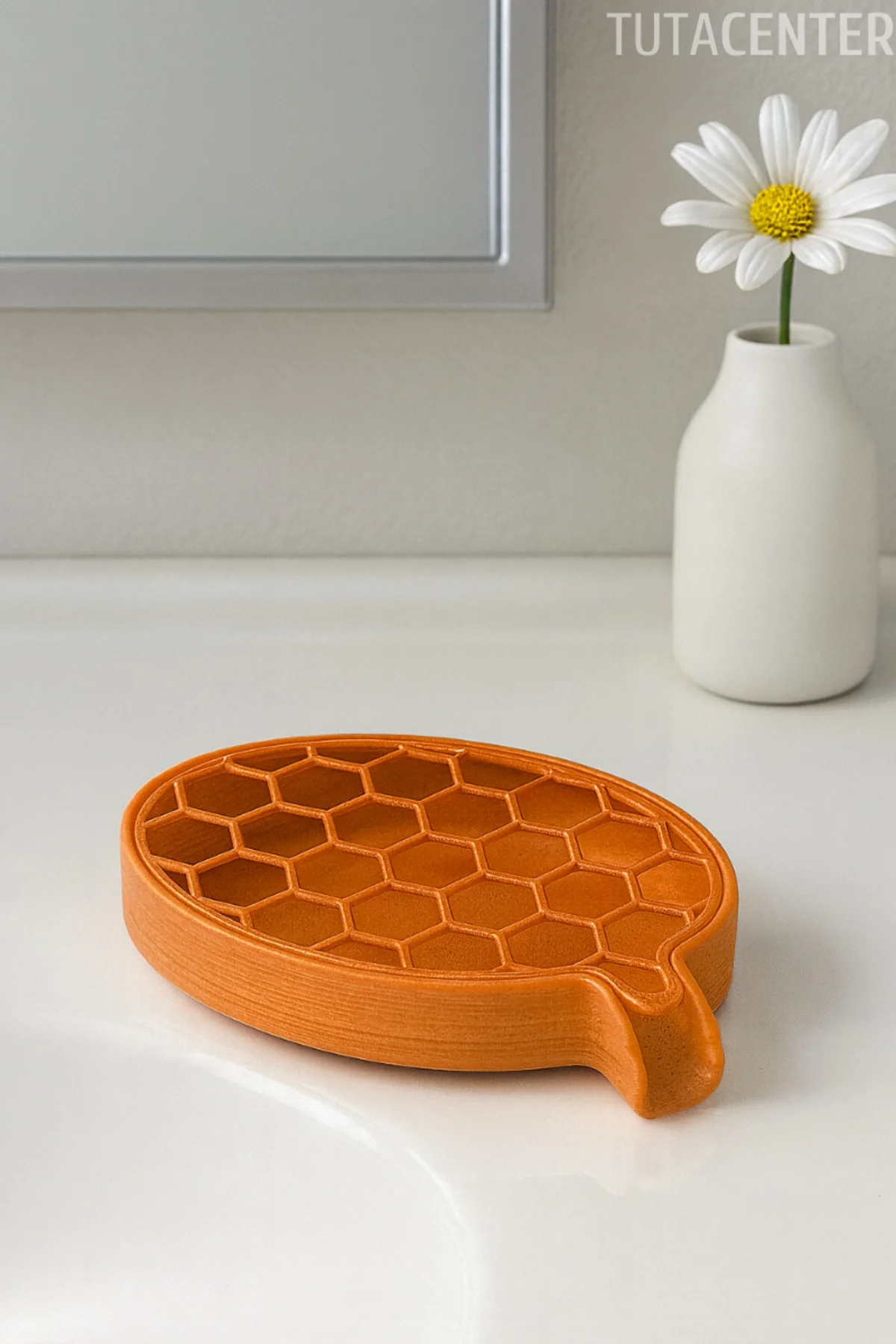 Petek Desenli Su Tahliyeli Sabunluk Standı Modern Banyo Standı