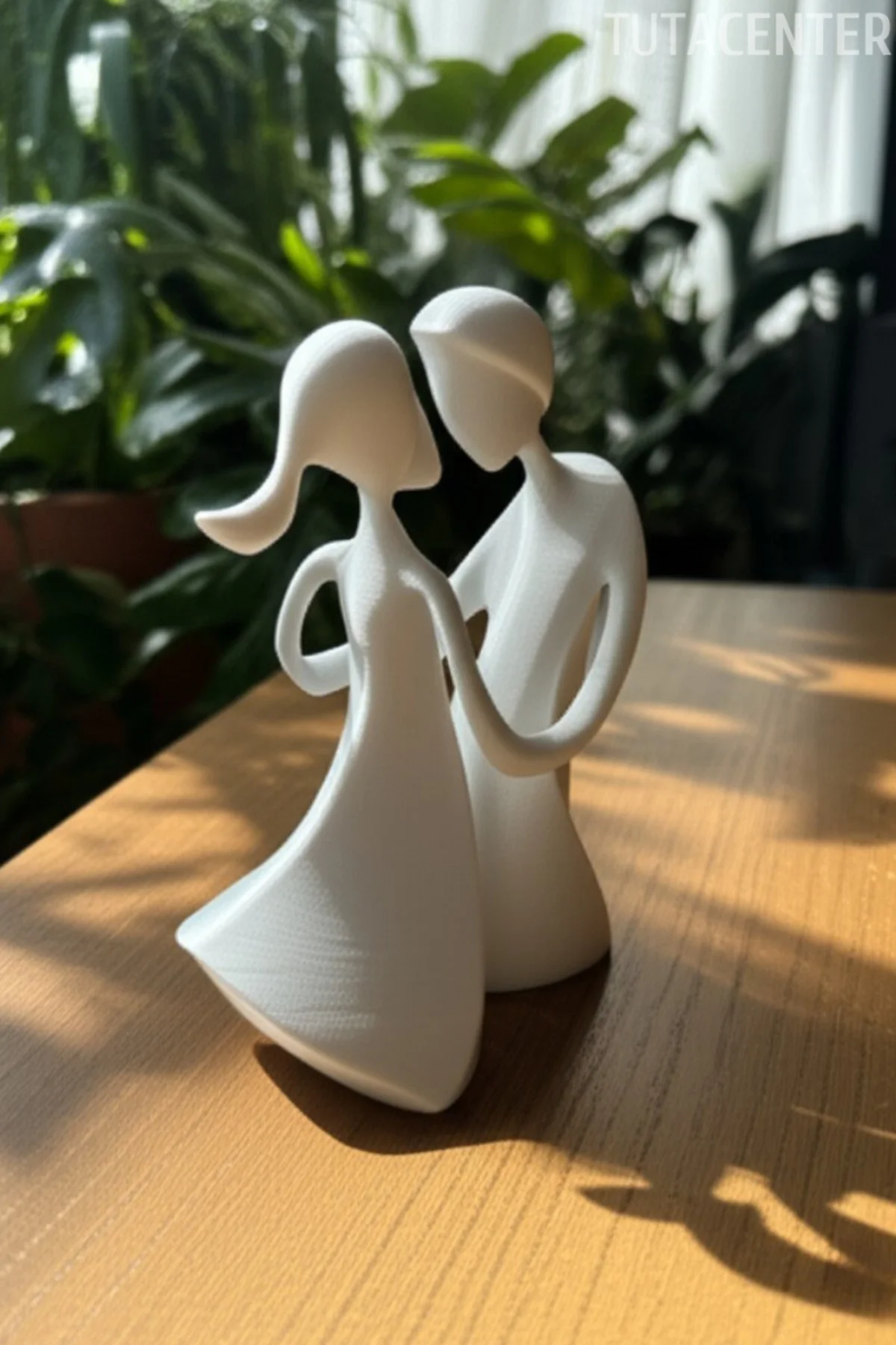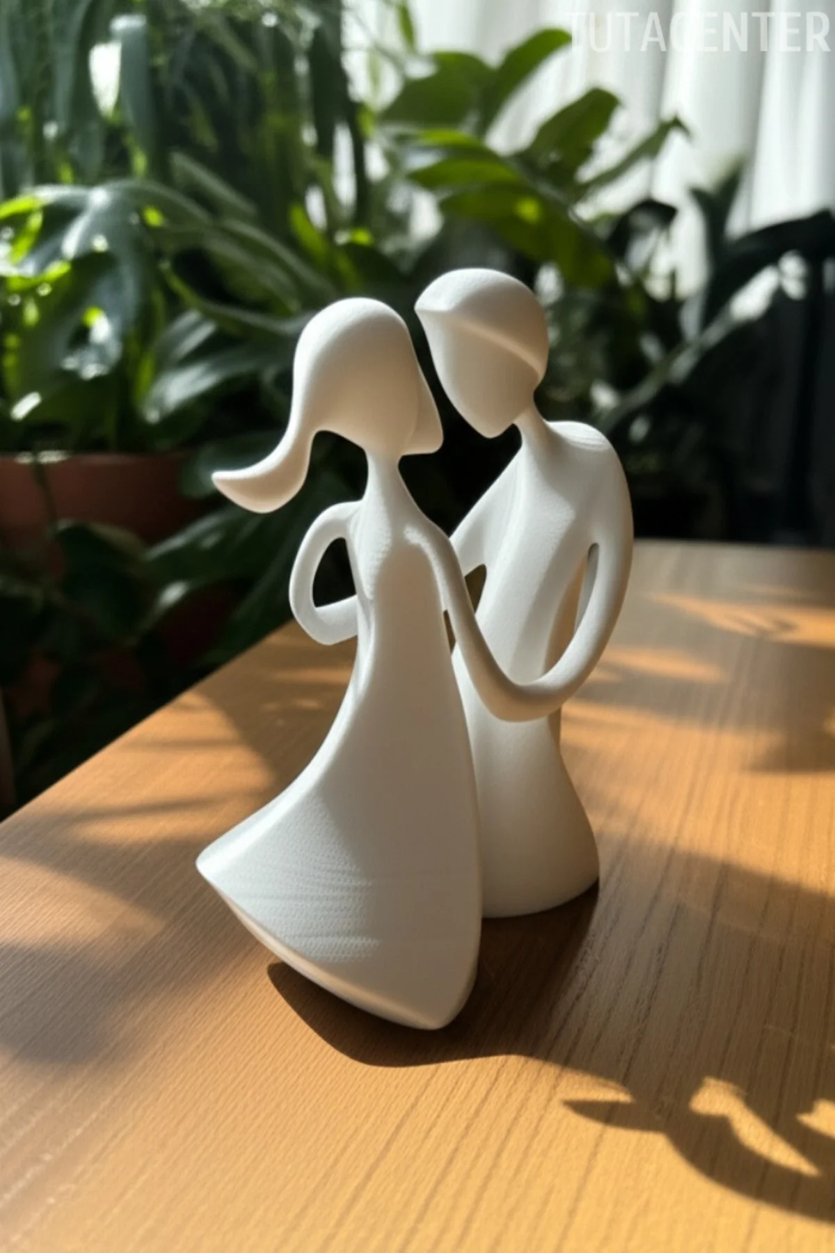 Romantik tasarım:Kadın ve erkeğin dans ettiği, sevgi dolu anları yansıtan romantik çift biblo