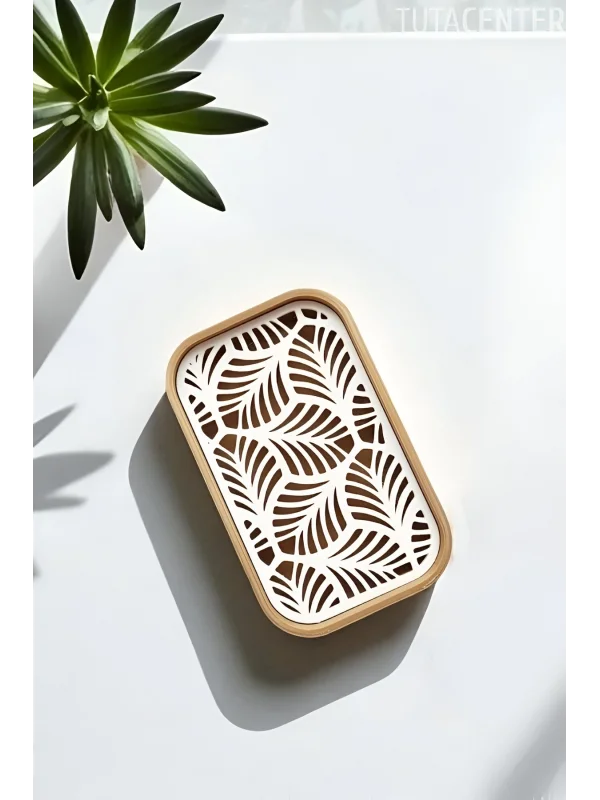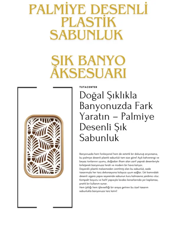 Palmiye Yaprağı Desenli Plastik Sabunluk – Açık Kahverengi Beyaz Renkli, Şık Banyo Aksesuarı