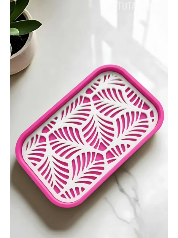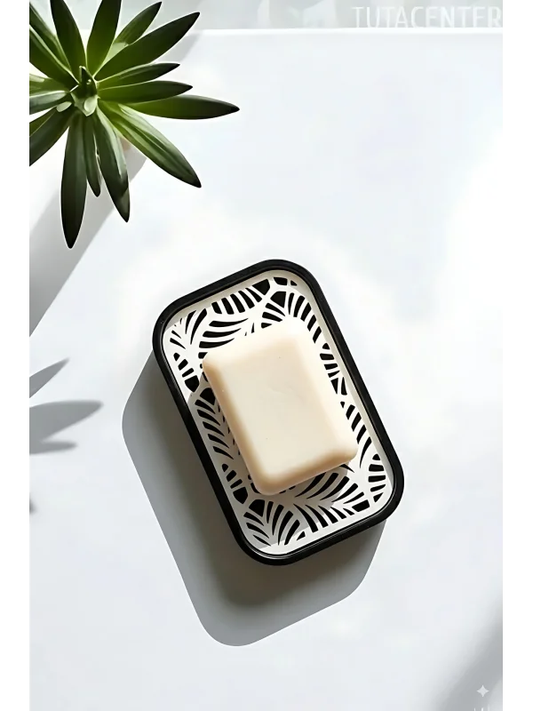 Palmiye Yaprağı Desenli Plastik Sabunluk – Siyah Beyaz Renkli, Şık Banyo Aksesuarı