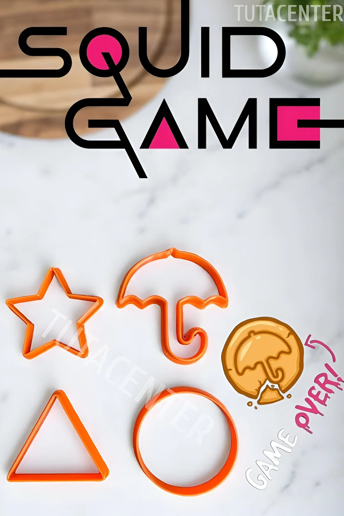 Squid Game Temalı 4’lü Bioplastik Kurabiye Kalıbı Seti – Yıldız, Üçgen, Daire, Şemsiye