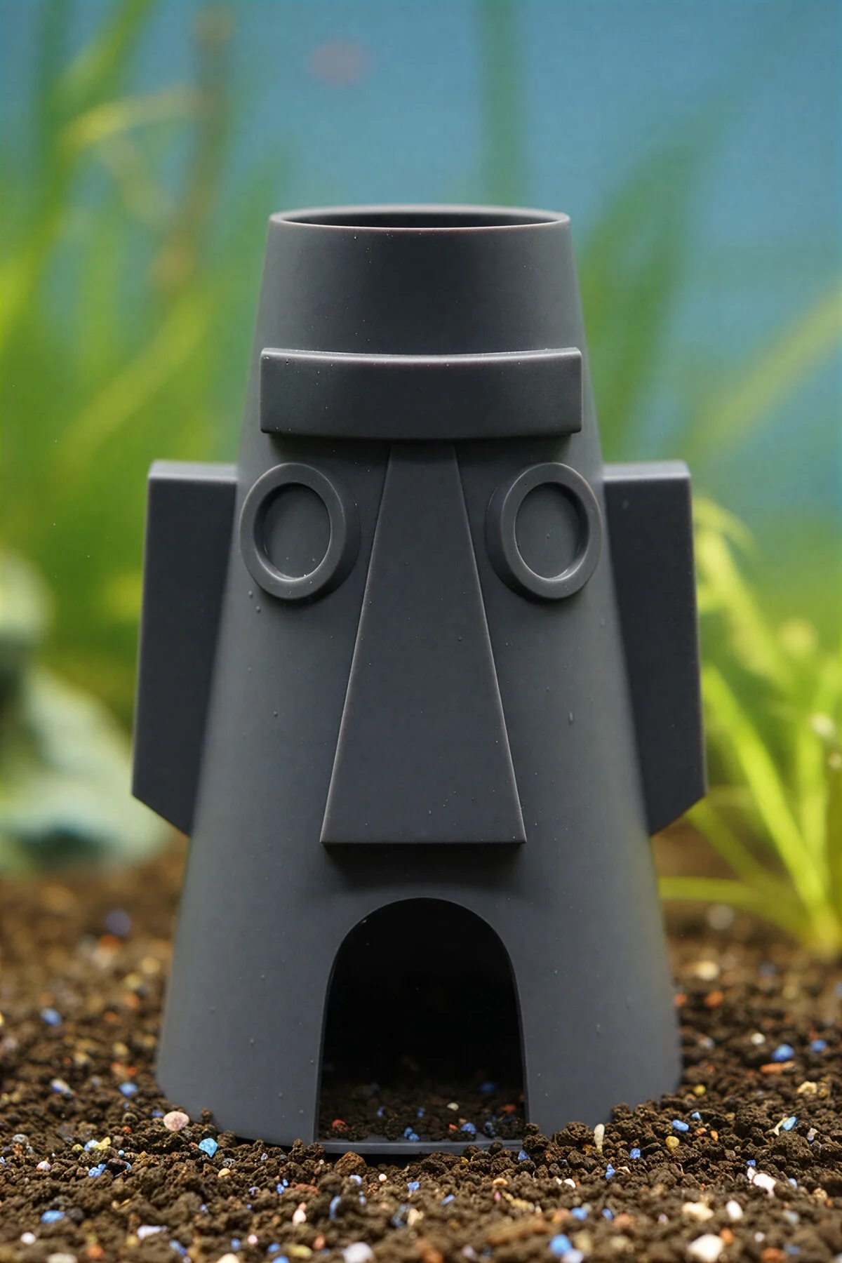 Akvaryumunuza çizgi film eğlencesi ve modern bir dekor görünümü katmak istiyorsanız bu ürün tam size göre! Minimalist gri tasarımı ve ikonik yüz hatlarıyla akvaryumda hem şık hem de eğlenceli bir atmosfer oluşturur. Balıkların güvenle girip çıkabileceği geniş bir saklanma alanı sunar.