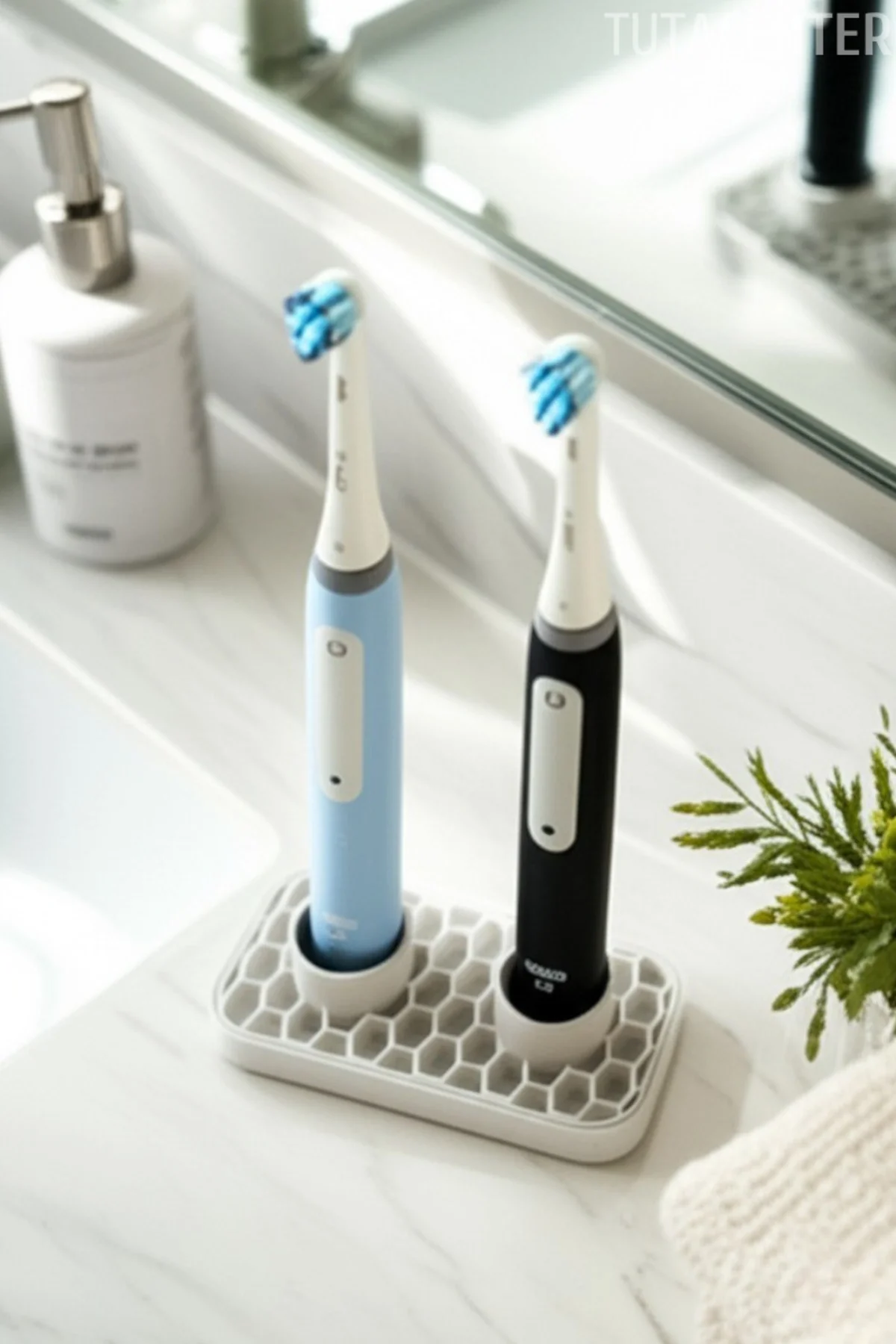 Tahliyeli Elektrikli Diş Fırçası Tutucu (Şarjlı Diş Fırçası Tutucu Stand 2 Bölmeli)