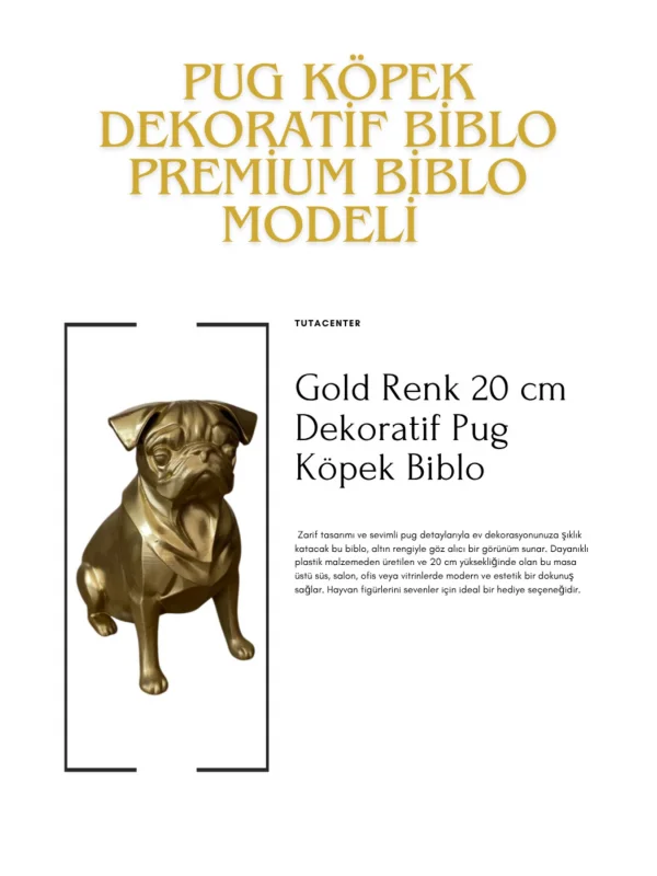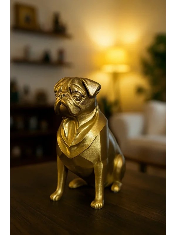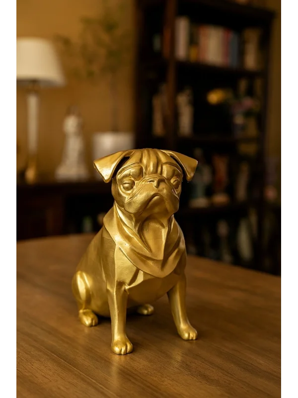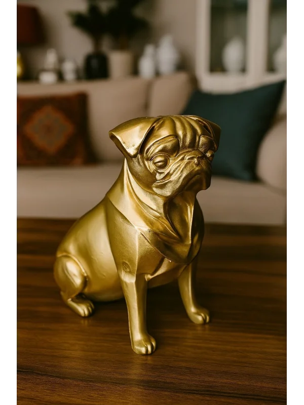 Pug Köpek Dekoratif Biblo - Gold (Altın Renk) 20CM - PLASTİK Premium Biblo Modeli