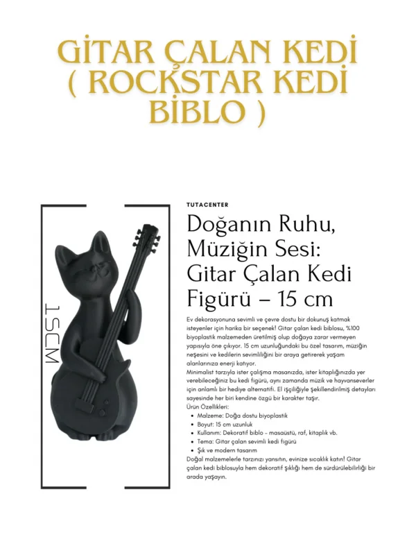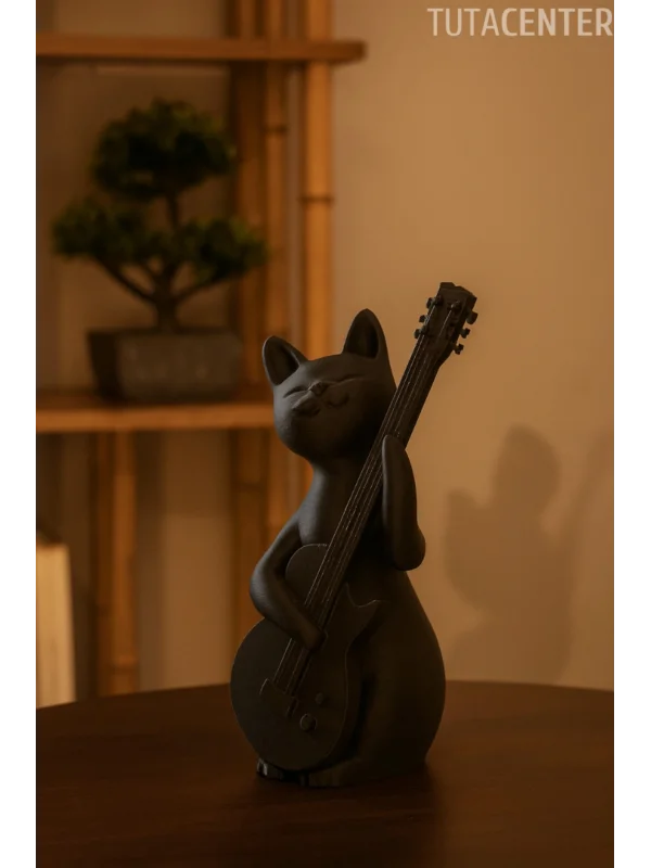 Gitar Çalan Kedi Biblo Modern Biblo 15CM Plastik ( Rockstar Kedi Biblo )