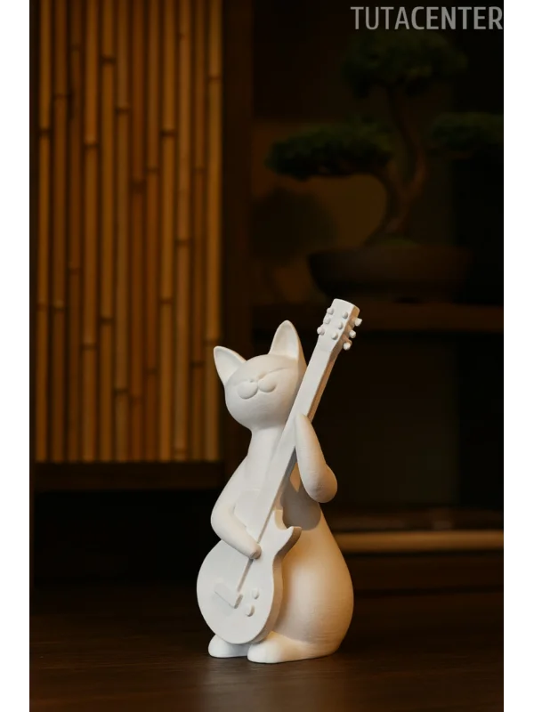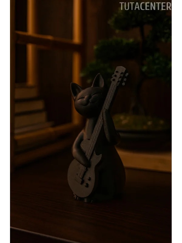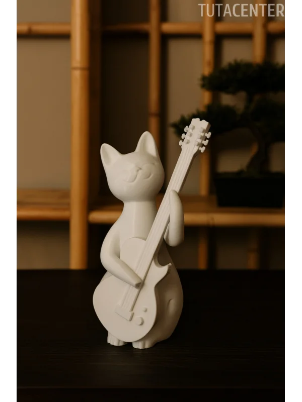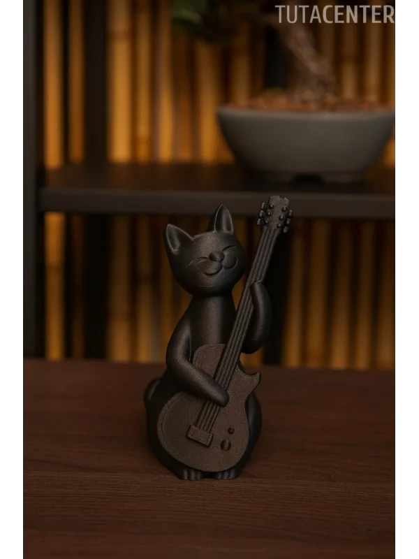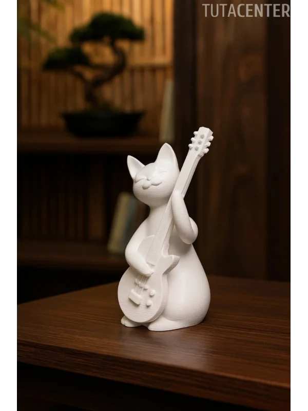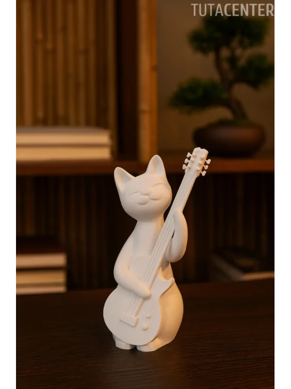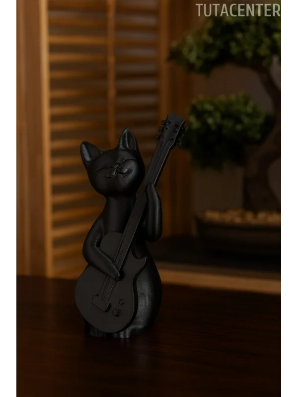 Gitar Çalan Kedi Biblo Modern Biblo 15CM Plastik ( Rockstar Kedi Biblo )